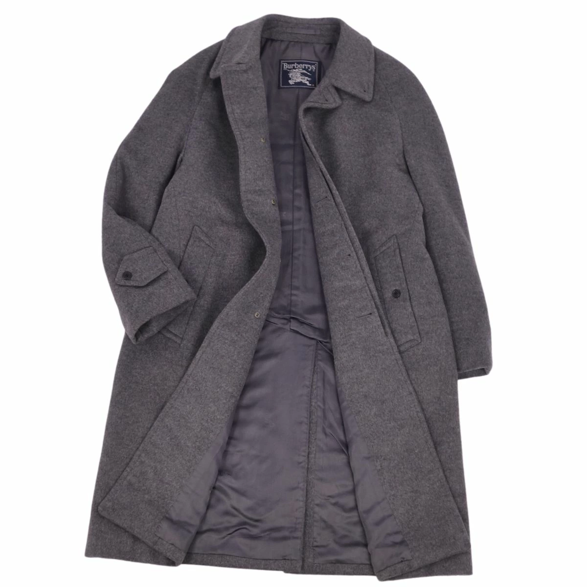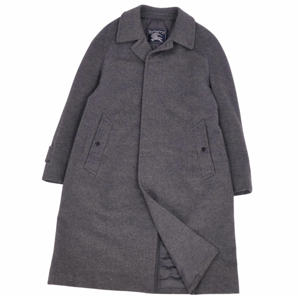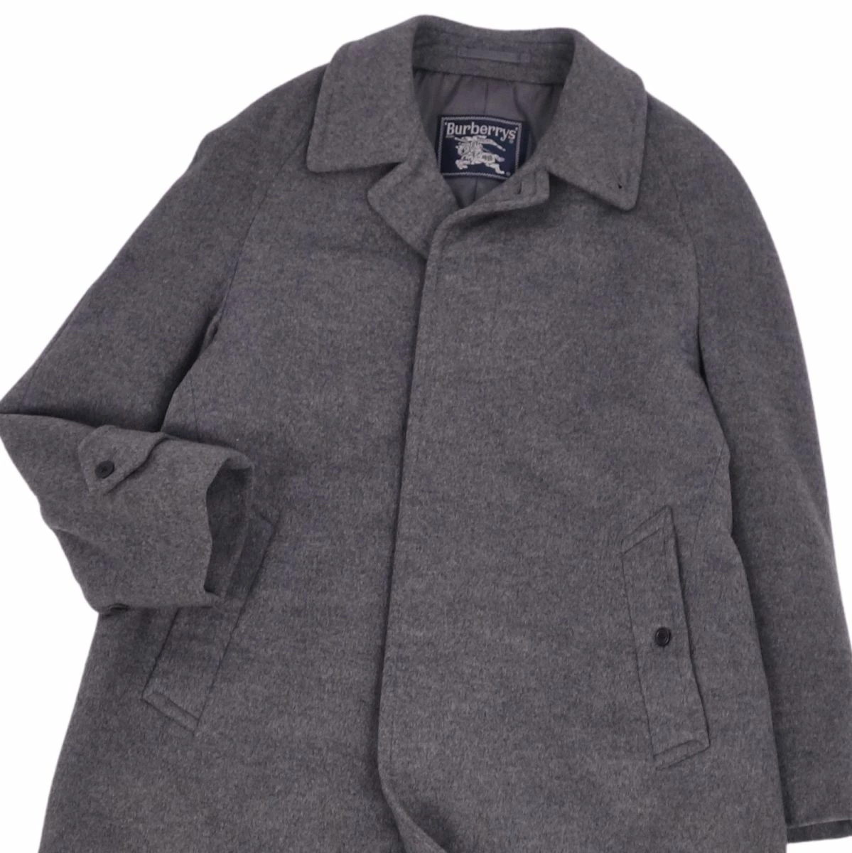 ■商品名Vintage バーバリー Burberrys コート ステンカラーコート バルマカーンコート カシミヤ ウール アウター メンズ グレー サイズ90-165(S相当)■状態説明・希少かつ絶大な人気を誇るVintage Burberrys、クラシカルで美しいシルエットが魅力的なステンカラーコート(バルマカーンコート)です♪・表地はウール×カシミヤブレンド素材、袖通しの良い裏地付き、肩パットなしの美しいショルダーラインです◎・国内正規取扱品です。・USEDですが使用感も少なくキレイな状態です!・裏地にネーム刺繍が御座います。【季節感:秋冬】【付属品:なし】■素材表地:カシミヤ50% ウール50% 裏地:キュプラ100%■カラーグレー■表記サイズ90-165(S相当)■実寸サイズ着丈:約98cm身幅:約53cmゆき丈:約80cm袖丈(脇下から):約38cm■状態ランクSA 使用感のほぼ無いとてもキレイなUSED品■店舗管理番号cf12ml-rm20f12485mens_grey mens_s