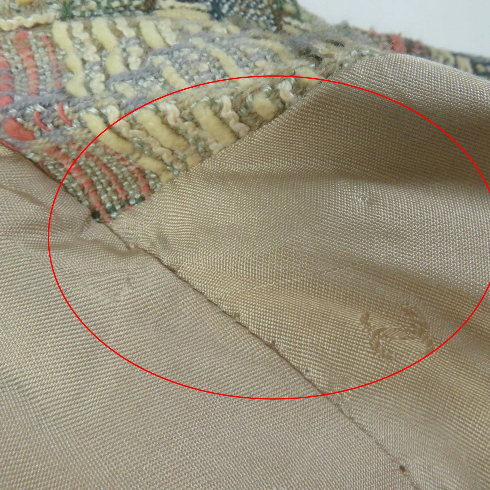 | 素材 (material) | 表地:ウール49% :コットン23% :シルク11% :アクリル8% :ナイロン5% :レーヨン2% :ポリエステル2% 裏地:シルク100% | ||||||||||||||||