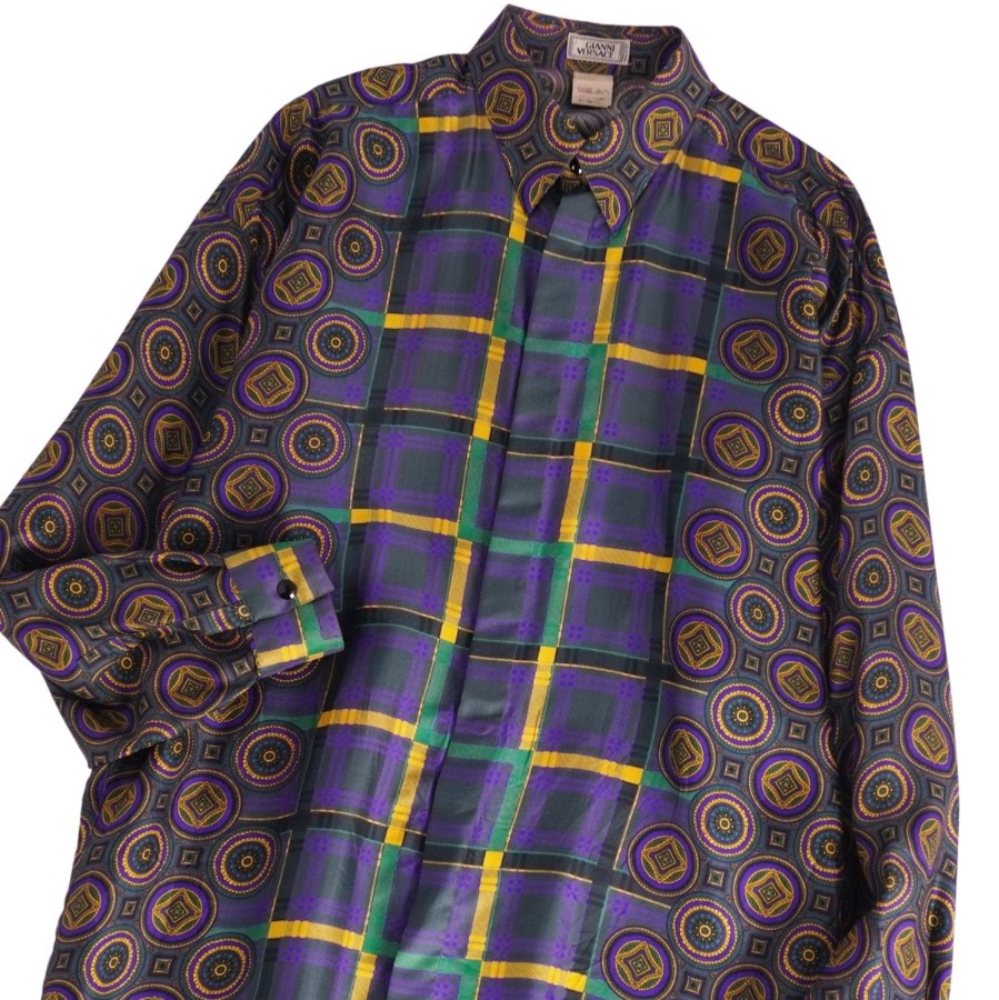 Vintage ジャンニヴェルサーチ GIANNI VERSACE シャツ ロングスリーブ 長袖 シルク 総柄 トップス メンズ イタリア製 マルチカラー サイズ48(M相当)