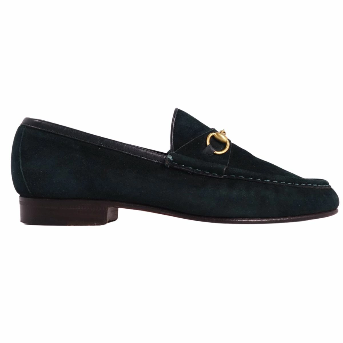 [Excellent Condition] Vintage Gucci Horsebit Loafers/Moccasins in Suede Leather, Made in Italy, Women's, Size 37.5C (equivalent to 24.5cm), Green [Pre-owned]