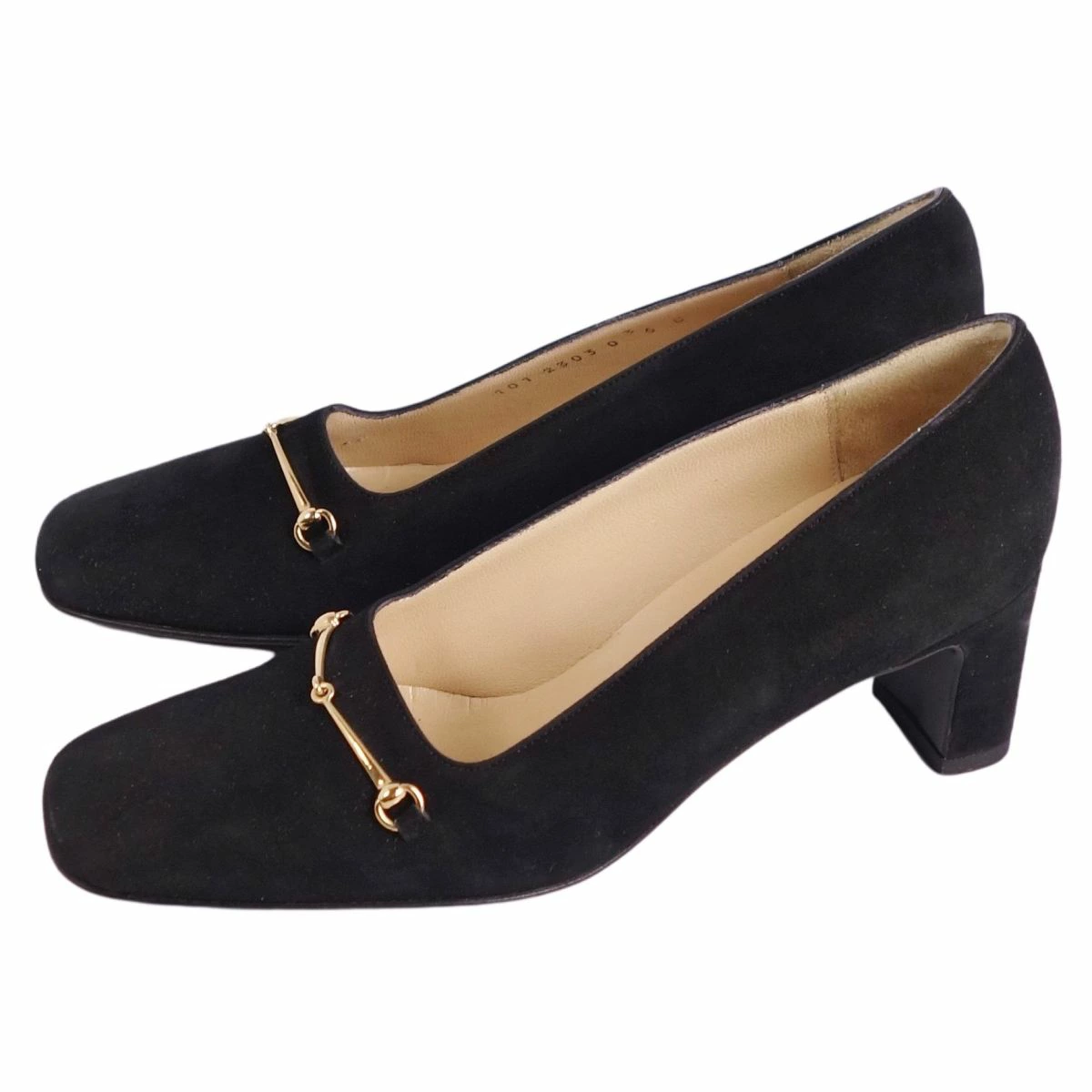 ■商品名Vintage グッチ GUCCI パンプス ホースビット スウェードレザー ヒール シューズ 靴 レディース イタリア製 ブラック サイズ35C(22cm相当)■状態説明・希少なVintage GUCCI。上質なスウェードレザーを贅沢に使用した、パンプスです♪・ブラックのカラーリングにアイコニックなホースビットデザインが目を引く一品です◎・イタリア製・USEDですが気になるようなキズや汚れなどはなく全体的にキレイな状態です!・トップリフト交換済みです。【季節感:オールシーズン】【付属品:なし】■素材スウェードレザー■カラーブラック■表記サイズ35C(22cm相当)■実寸サイズヒール:約5.5cm幅:約7.5cmインソール全長:約24cm■状態ランクA 使用感の少ない全体的にキレイなUSED品■店舗管理番号ce07dm-rm20e32796womens_black