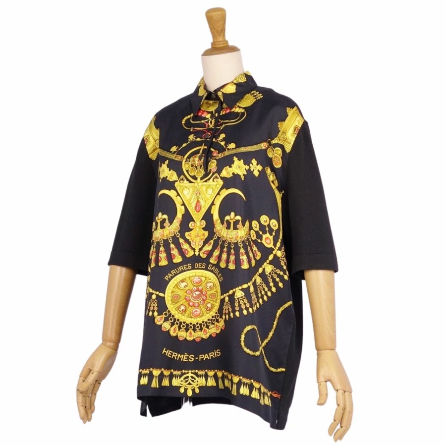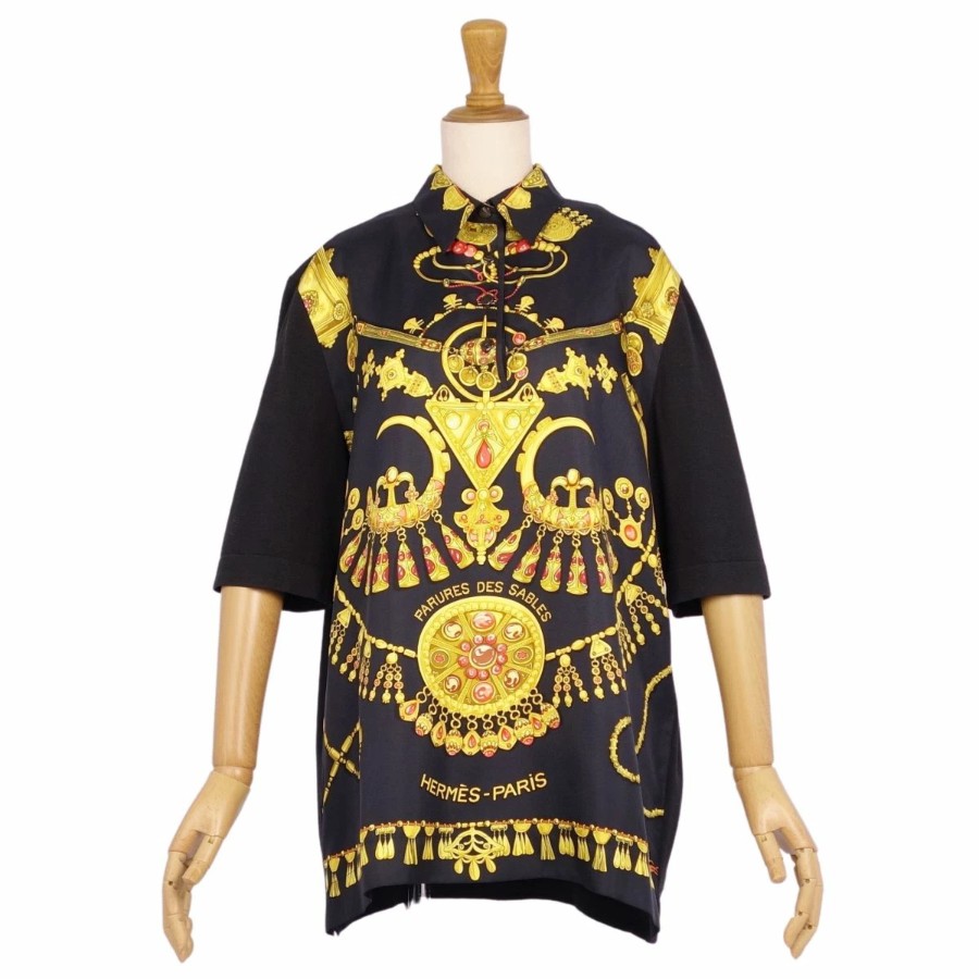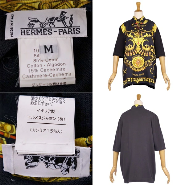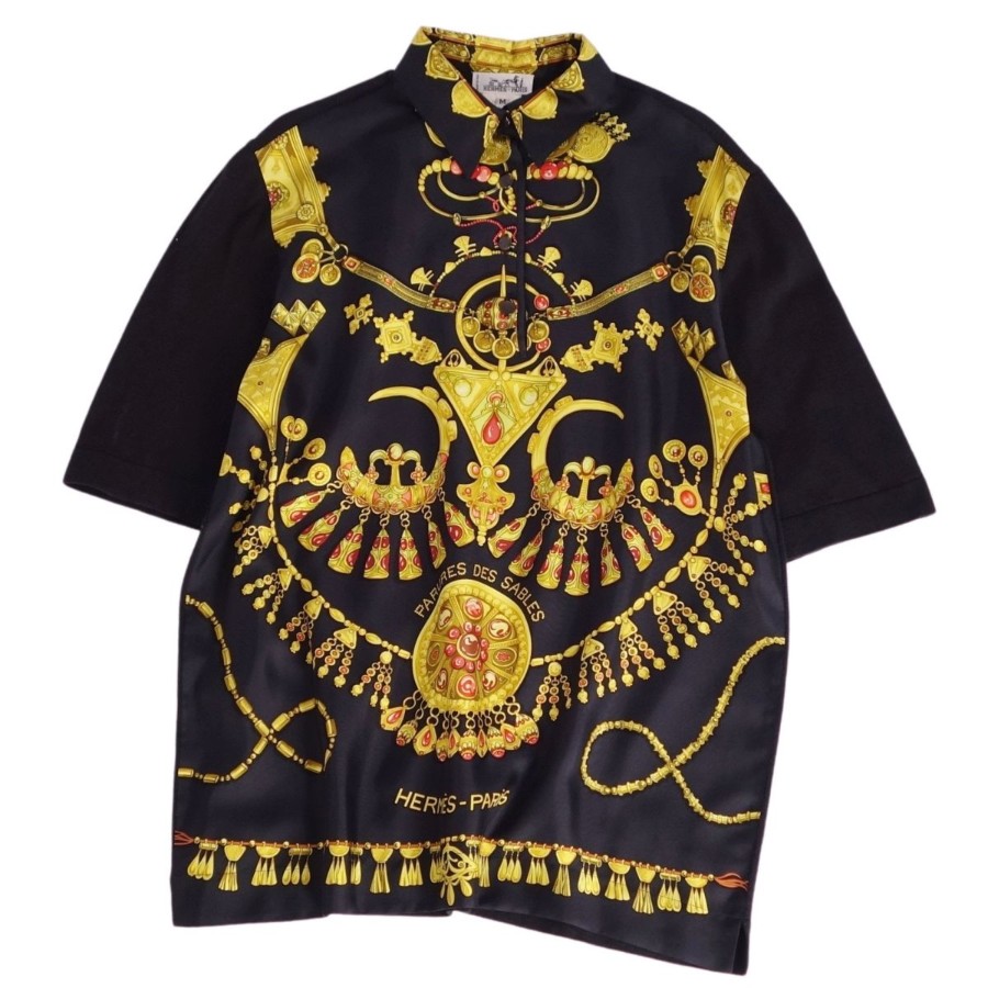 Vintage エルメス HERMES シャツ ショートスリーブ 総柄 シルク切り替え ニット トップス レディース イタリア製 マルチカラー サイズM