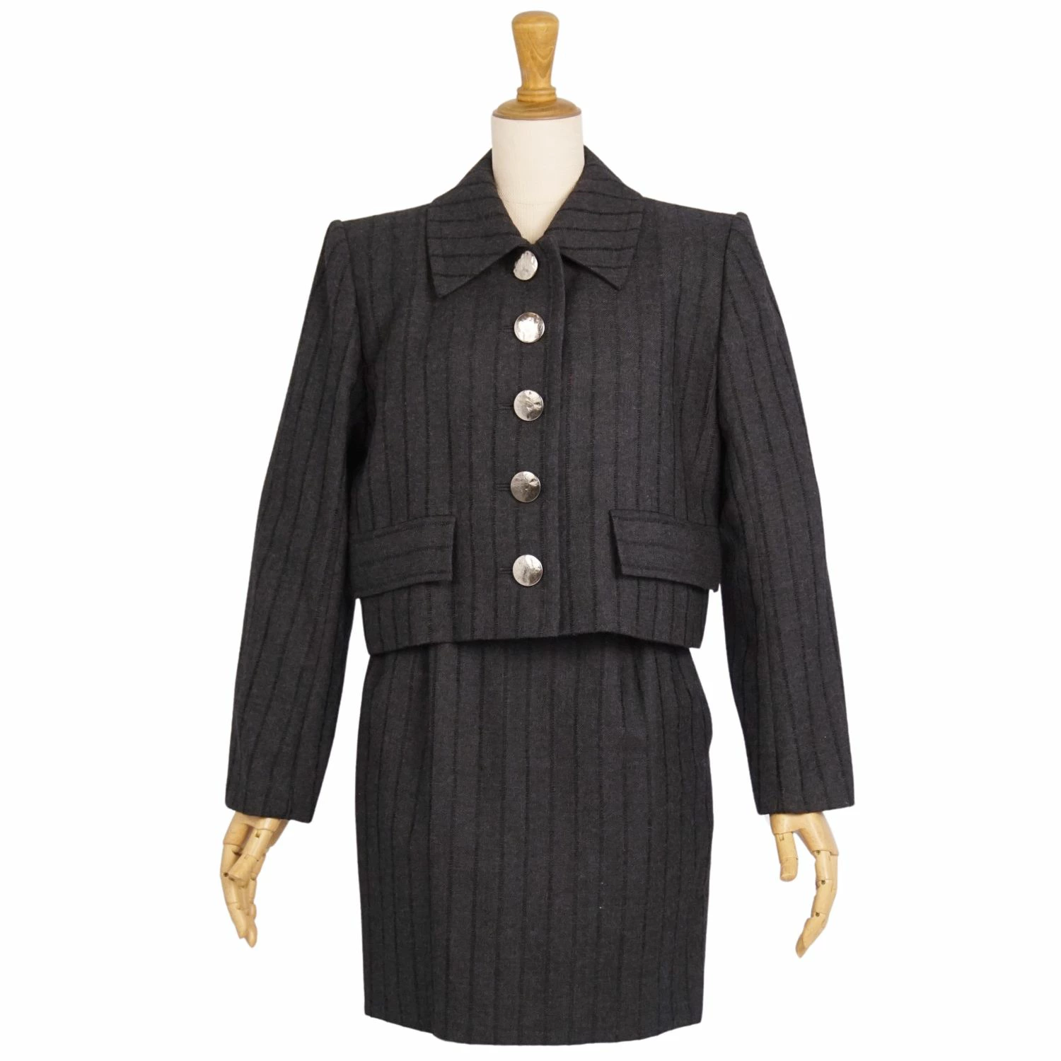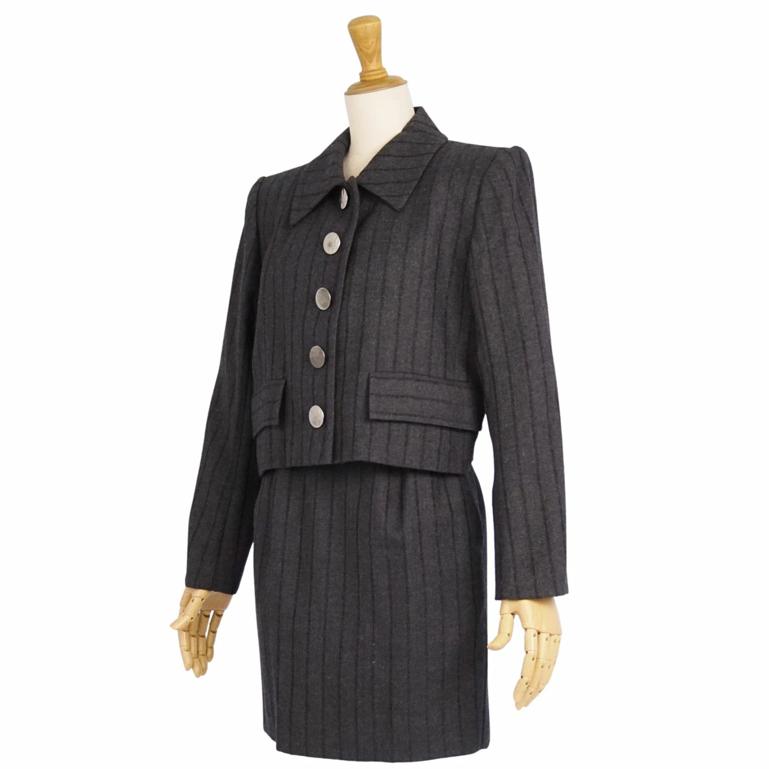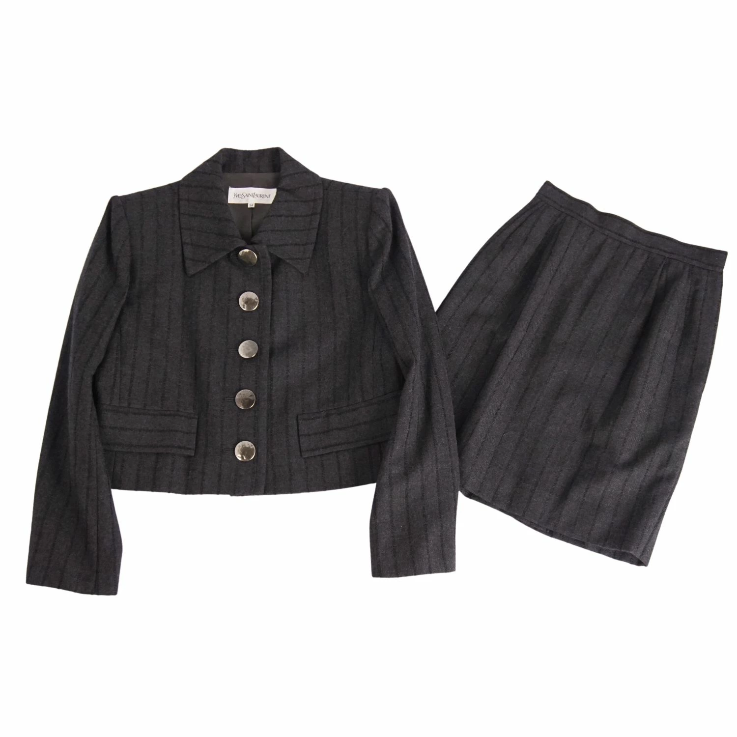 ■商品名Vintage イヴサンローラン Yves Saint Laurent セットアップ スカートスーツ ジャケット スカート ストライプ レディース グレー サイズ7A3(S相当)■状態説明・希少なVintage Yves Saint Laurent。肌触りの良い生地を使用した、セットアップ(ジャケット/スカート)です♪・秋冬春シーズンでお使いいただける一着です◎・国内正規取扱品です。・USEDですが使用感も少なくキレイな状態です!【季節感:秋冬春】【付属品:なし】■素材表地:毛100% 裏地:キュプラ100%■カラーグレー■表記サイズ7A3(S相当)■実寸サイズ着丈:約44cm身幅:約47cm肩幅:約39cm袖丈:約57cmボトムスウエスト/ヒップ:約56/76cm/cm裾幅/総丈:約44/47.5cm/cm■状態ランクSA 使用感のほぼ無いとてもキレイなUSED品■店舗管理番号ce11mb-rm20f13714womens_grey womens_s
