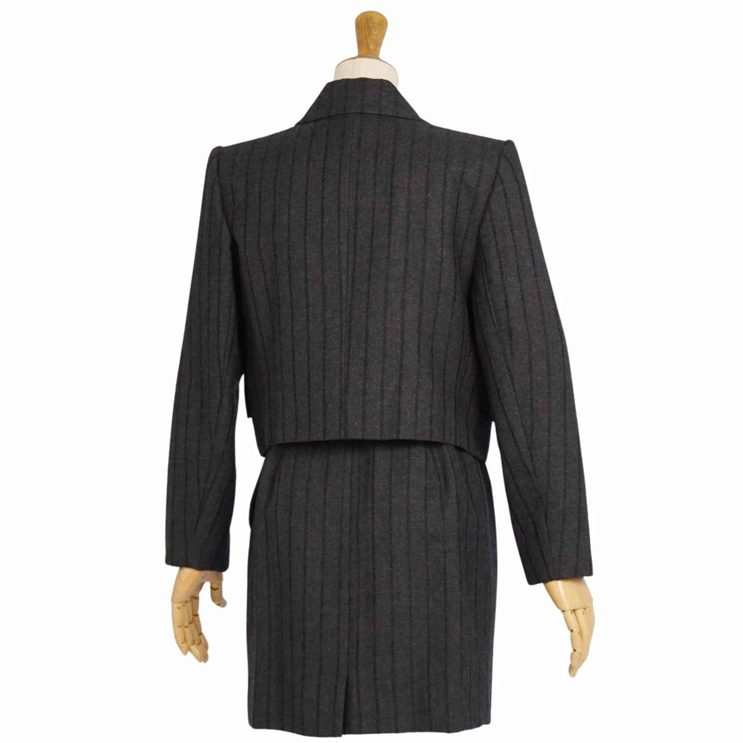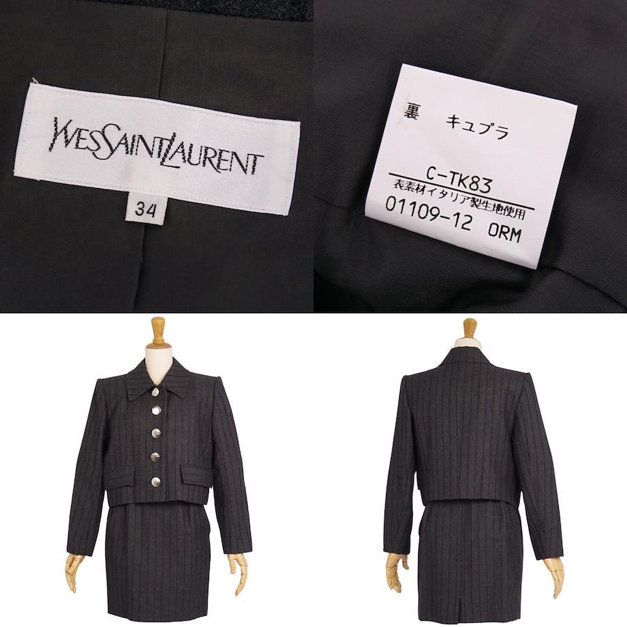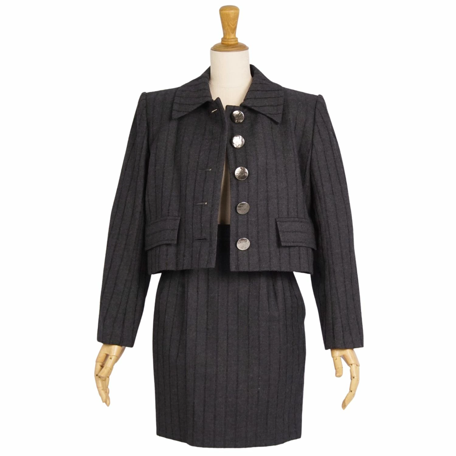 ■商品名Vintage イヴサンローラン Yves Saint Laurent セットアップ スカートスーツ ジャケット スカート ストライプ レディース グレー サイズ7A3(S相当)■状態説明・希少なVintage Yves Saint Laurent。肌触りの良い生地を使用した、セットアップ(ジャケット/スカート)です♪・秋冬春シーズンでお使いいただける一着です◎・国内正規取扱品です。・USEDですが使用感も少なくキレイな状態です!【季節感:秋冬春】【付属品:なし】■素材表地:毛100% 裏地:キュプラ100%■カラーグレー■表記サイズ7A3(S相当)■実寸サイズ着丈:約44cm身幅:約47cm肩幅:約39cm袖丈:約57cmボトムスウエスト/ヒップ:約56/76cm/cm裾幅/総丈:約44/47.5cm/cm■状態ランクSA 使用感のほぼ無いとてもキレイなUSED品■店舗管理番号ce11mb-rm20f13714womens_grey womens_s