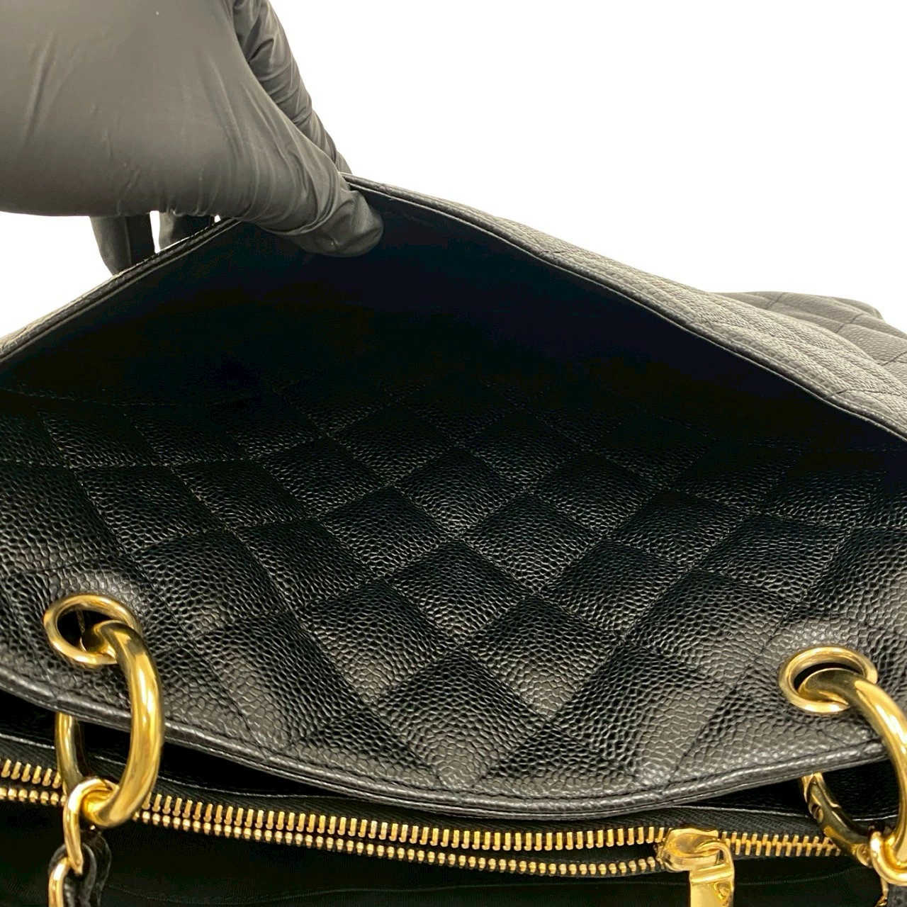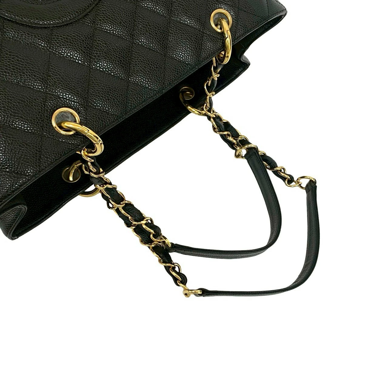 Excellent condition, with bag, card, and sticker. 8-series CHANEL Coco Mark caviar leather chain tote bag, black, 16531 [pre-owned]