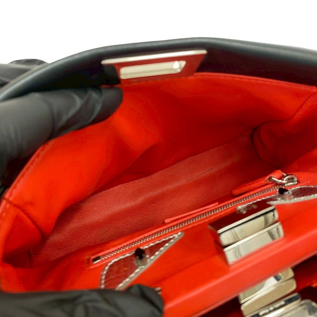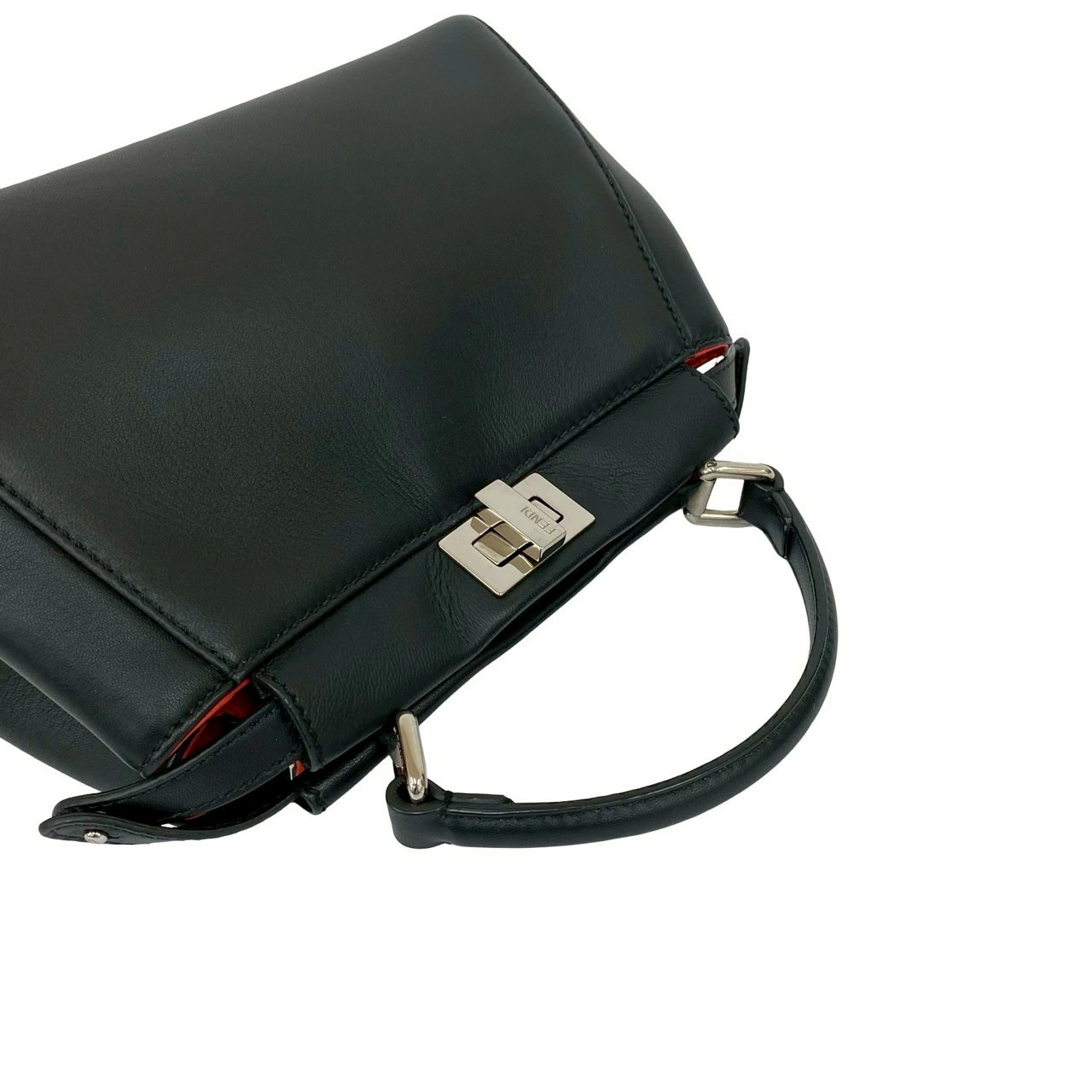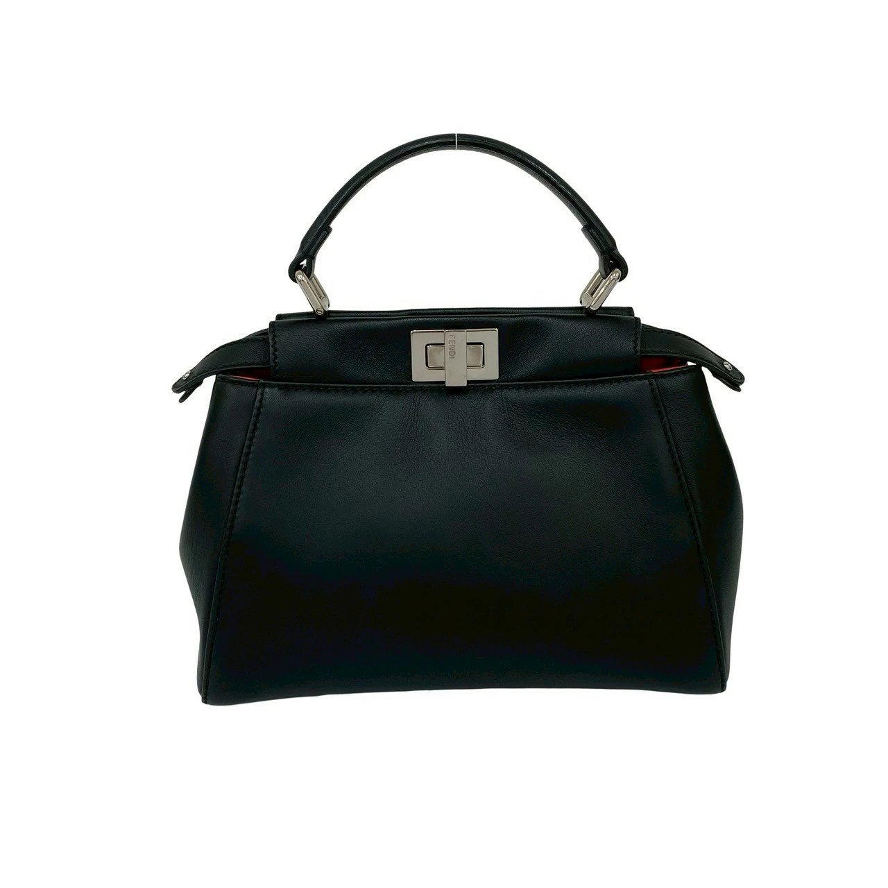 Excellent condition, with bag. FENDI Peekaboo Mini leather, genuine leather, turnlock closure, 2-way handbag/shoulder bag, black, 953-5. [Pre-owned]