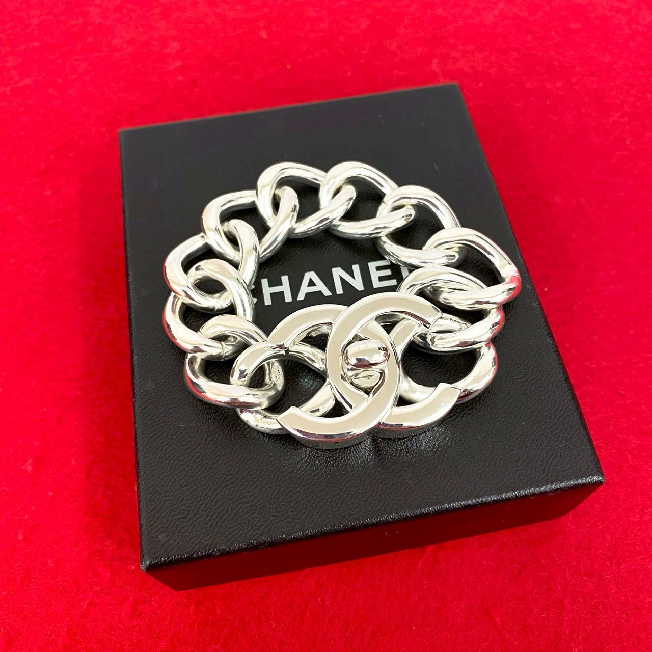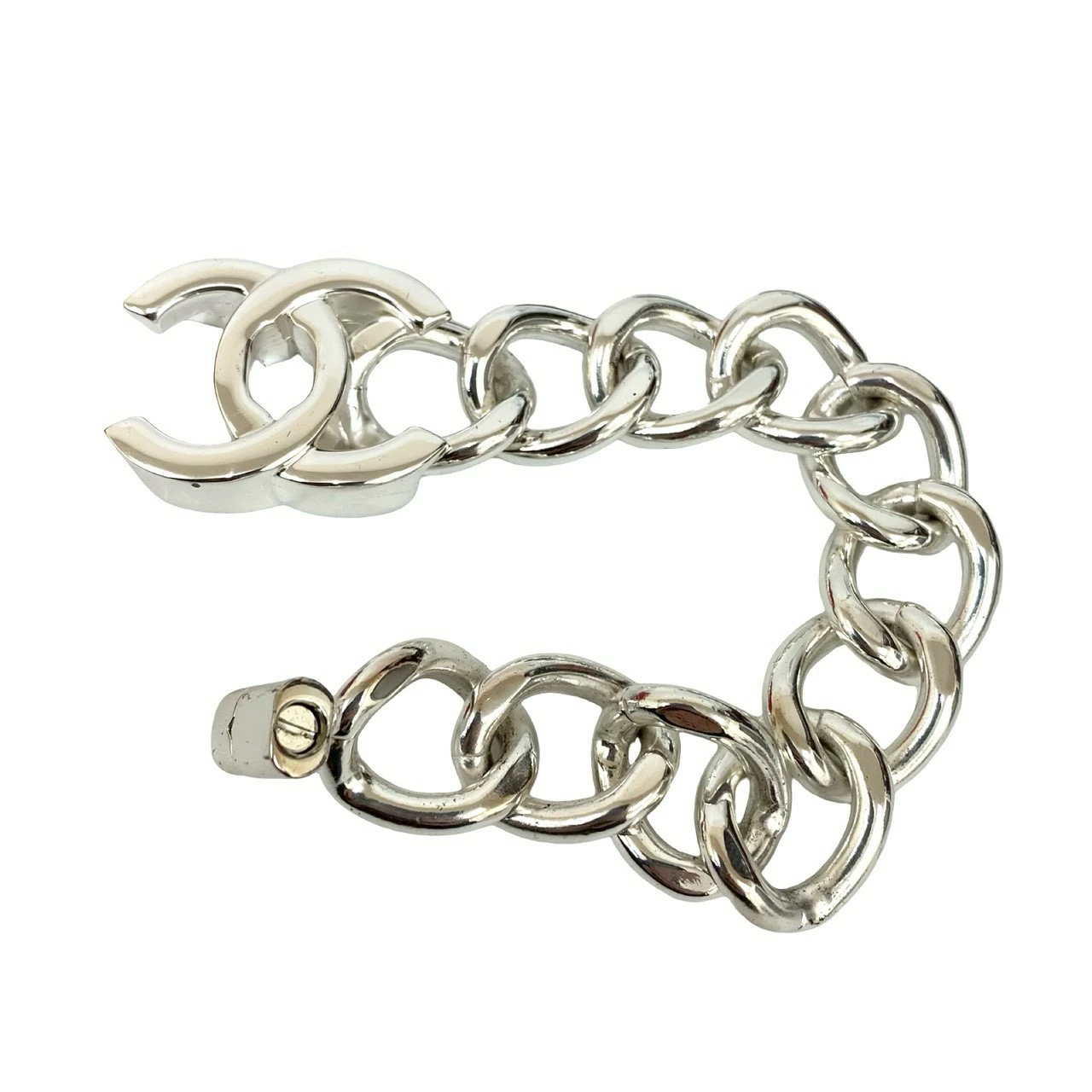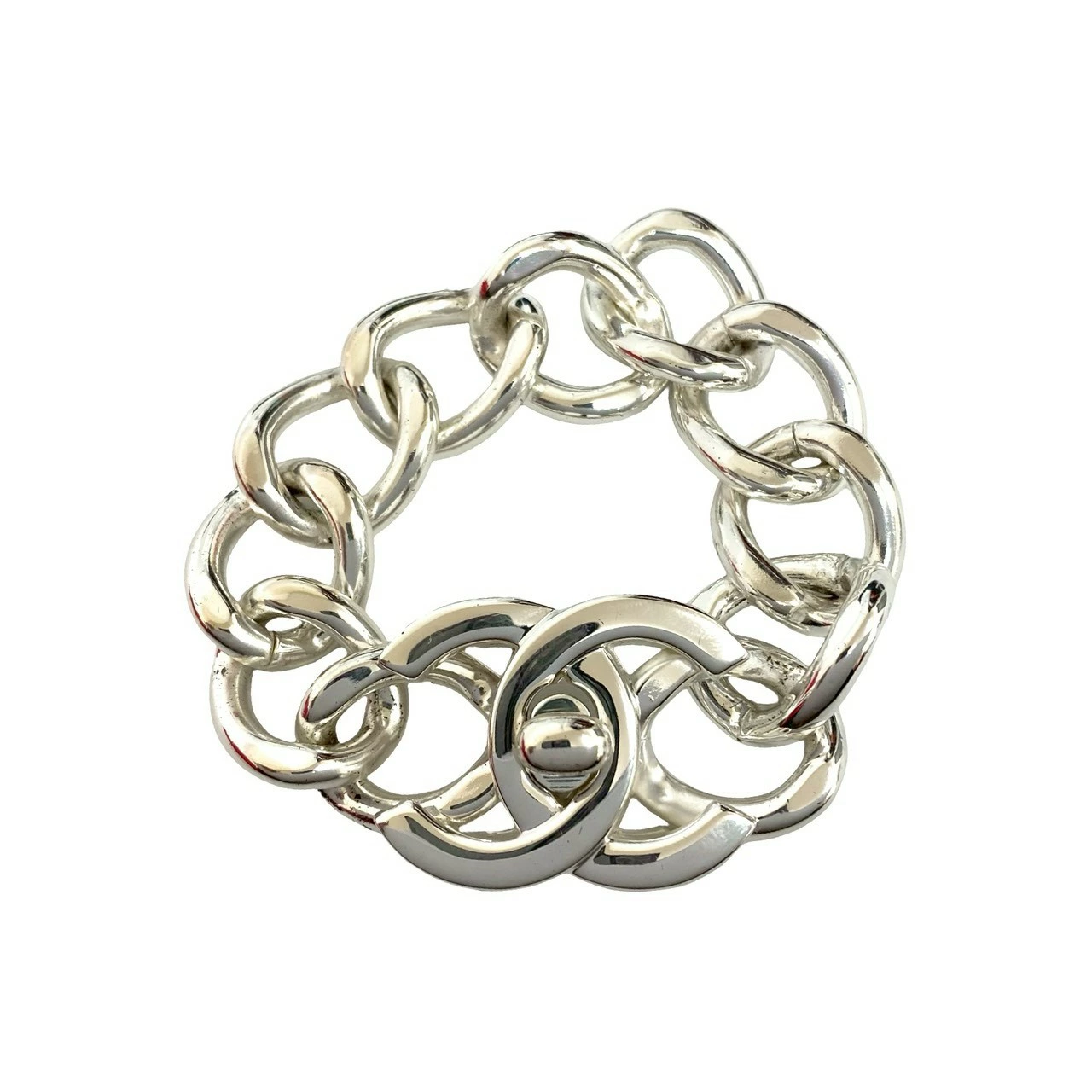 Excellent condition, with dust box and some marks. 96A CHANEL Coco Mark turnlock motif plated chain bracelet in silver, 34182. [Pre-owned]