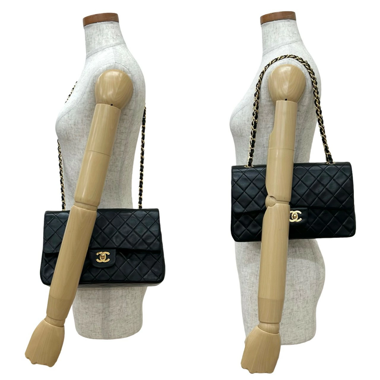 Excellent condition, with sticker, #2 CHANEL Matelasse Double Flap Coco Mark Lambskin Leather Chain Shoulder Bag, Black, 39868 (Pre-owned)
