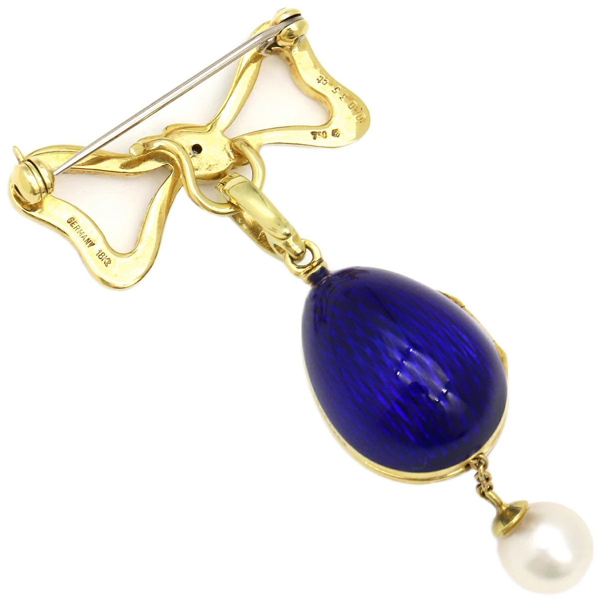 FABERGE Easter Egg Charm Brooch in 18K Yellow Gold with Enamel, Pearl, and Diamonds [Pre-owned]