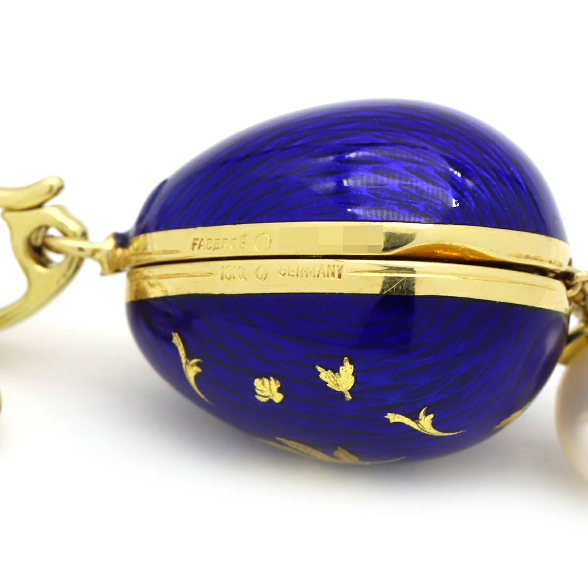 FABERGE ファベルジェ ブローチ イースターエッグ チャーム K18YG エナメル パール ダイヤモンド イエローゴールド レディース定番 人気 美品 【中古】