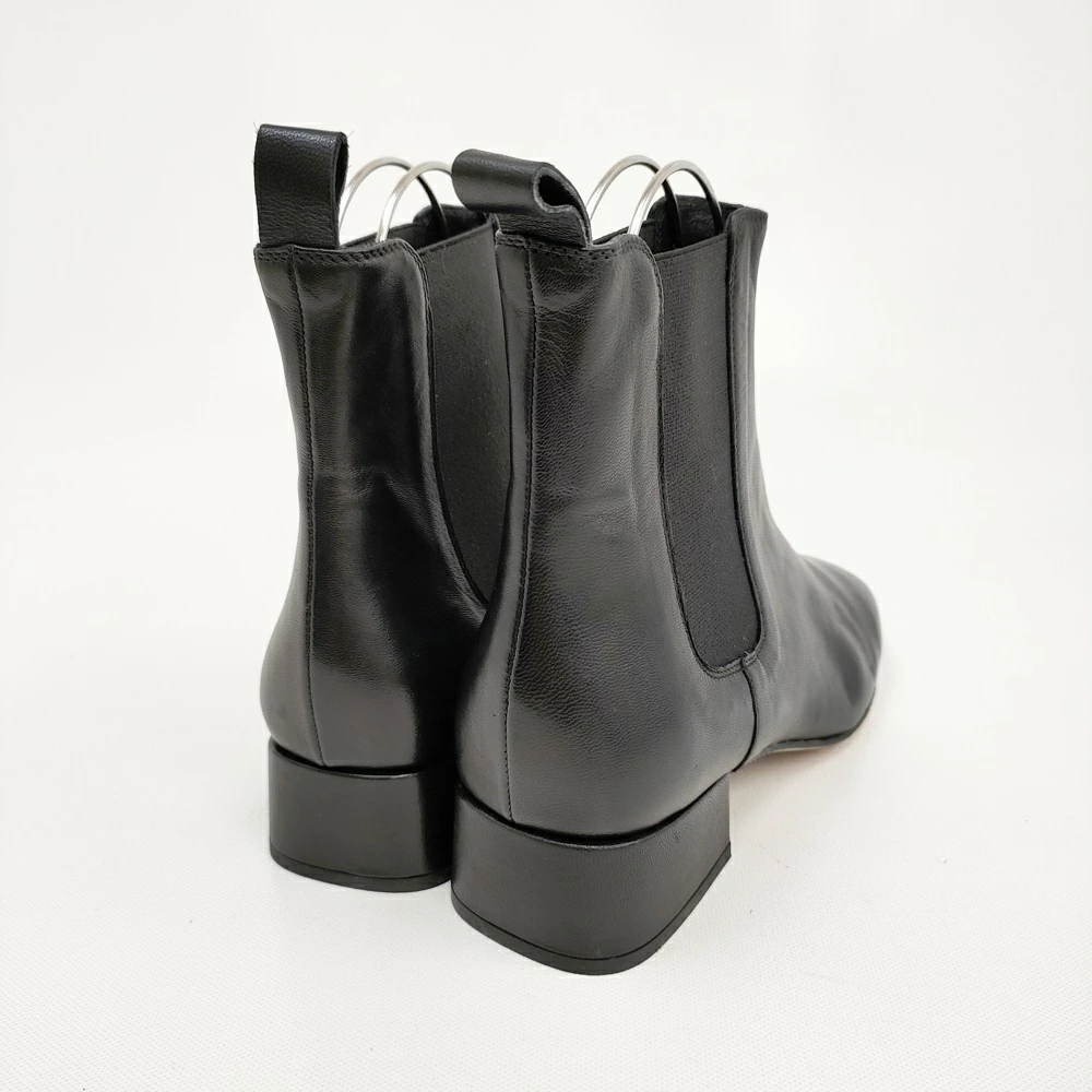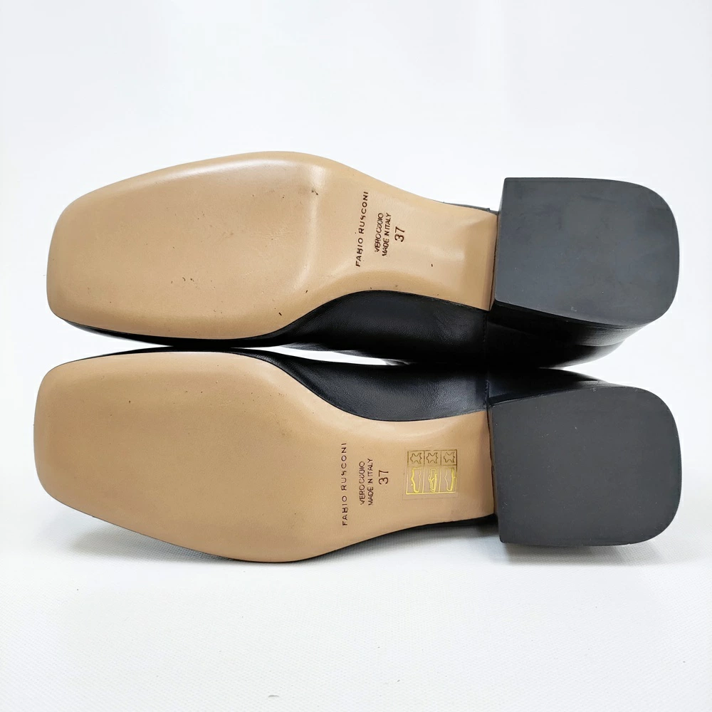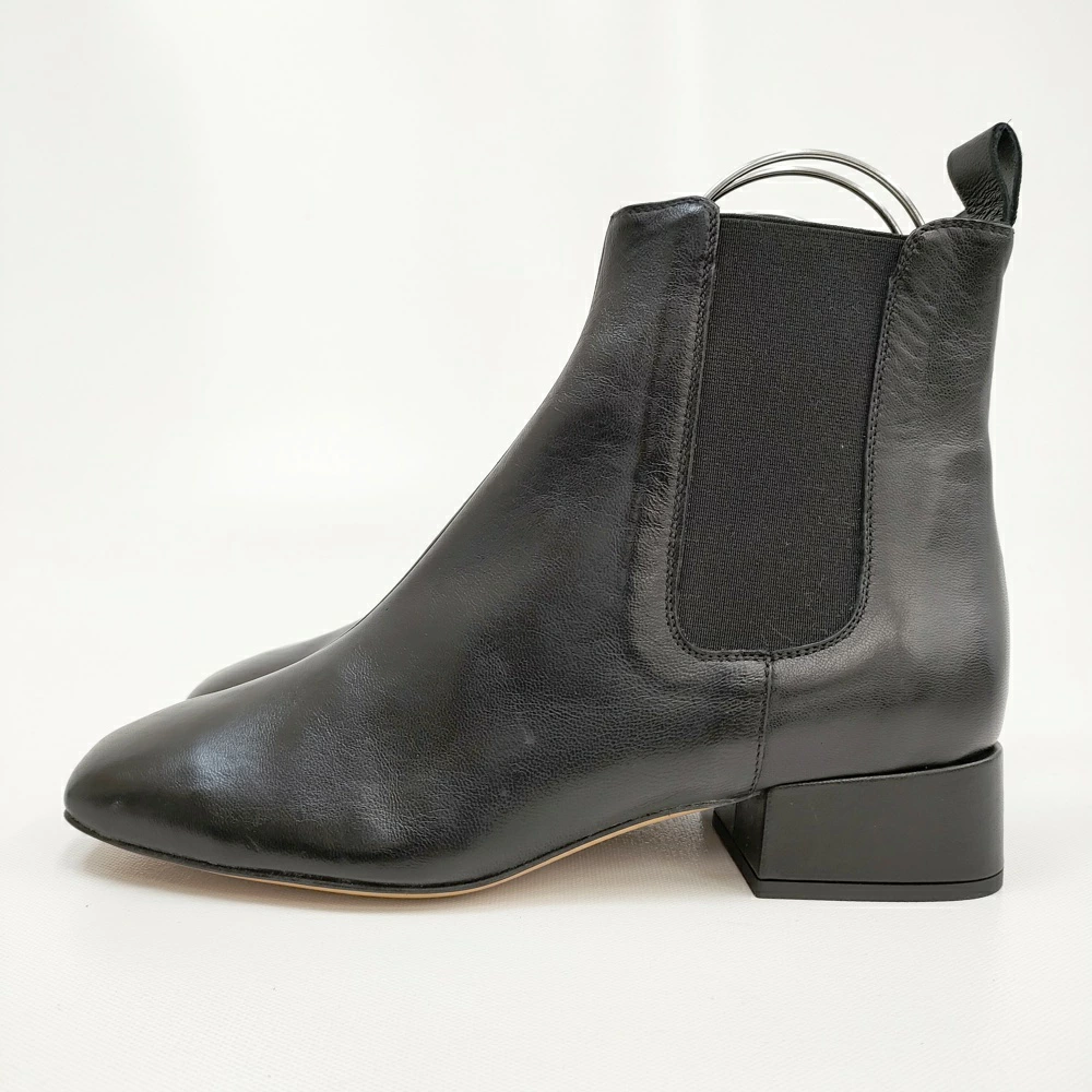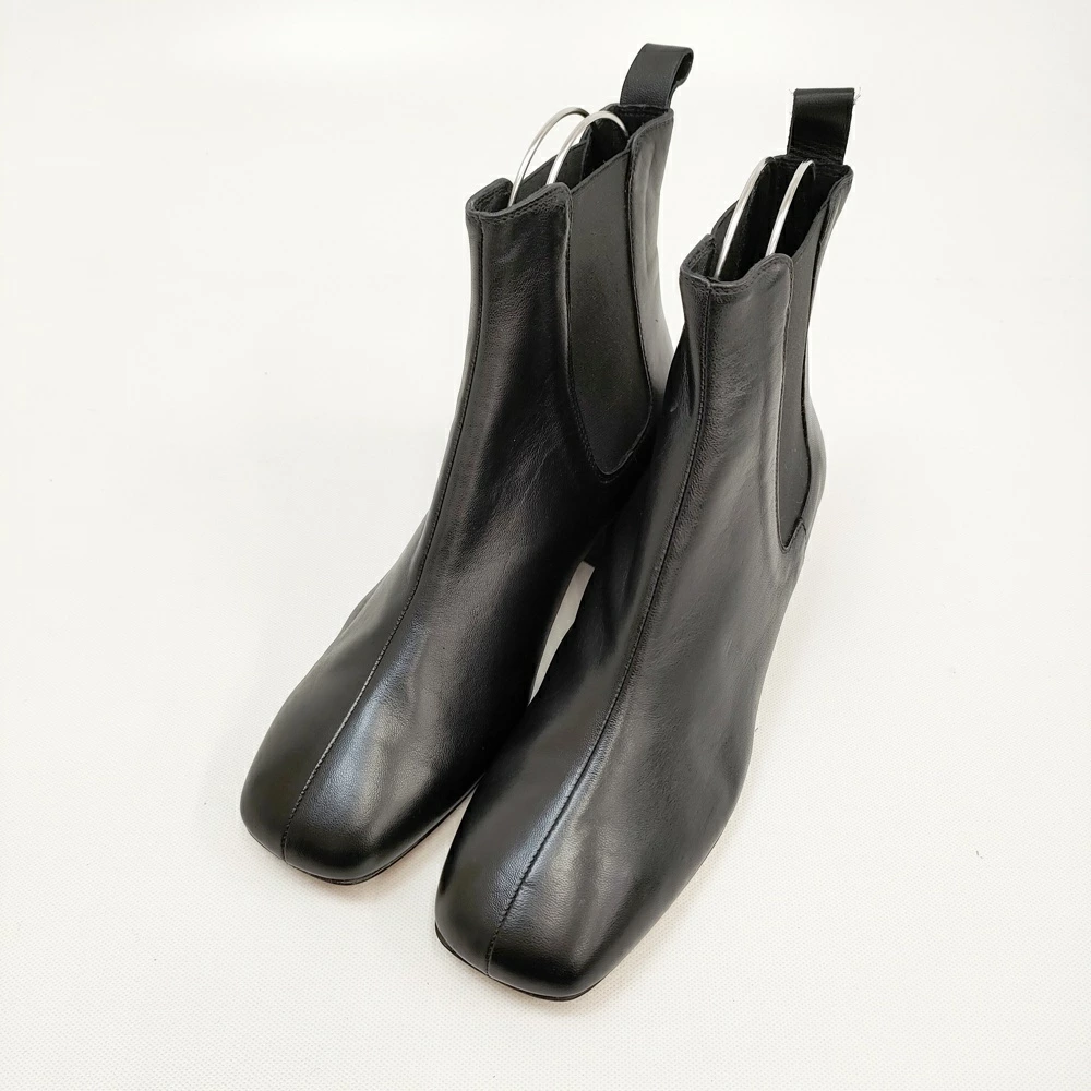 FABIO RUSCONI Square Toe Boots, Size 37, Side Gore, Black, Women's, Pre-owned, 4-1125T