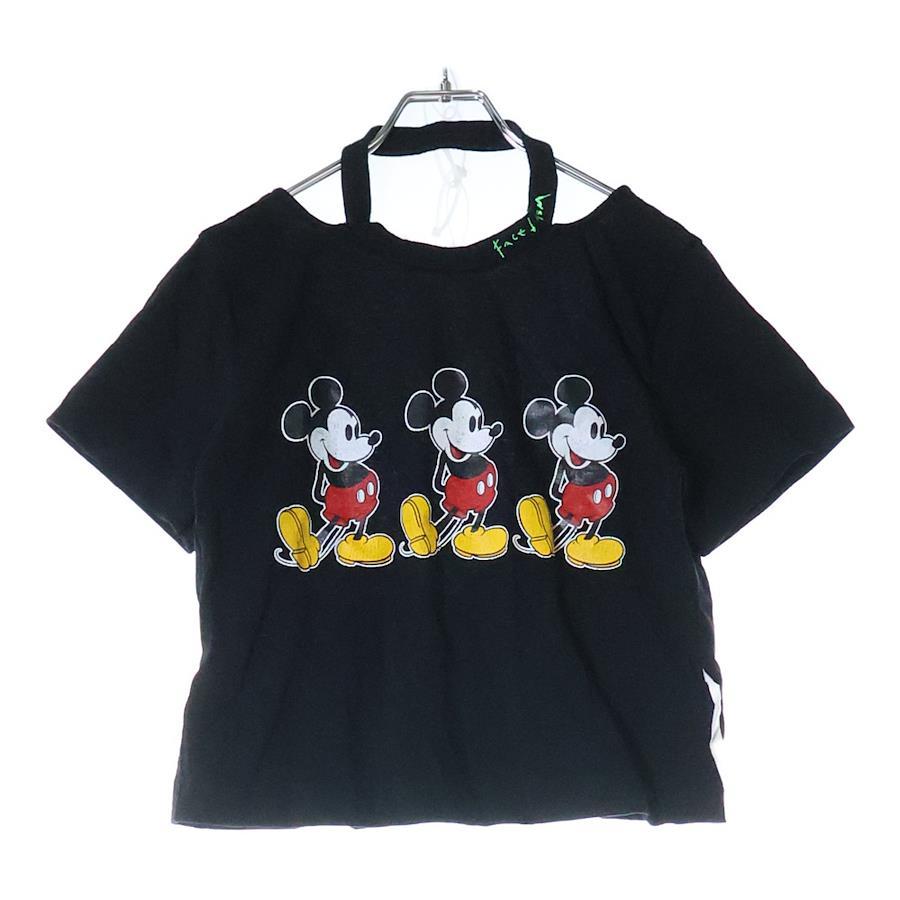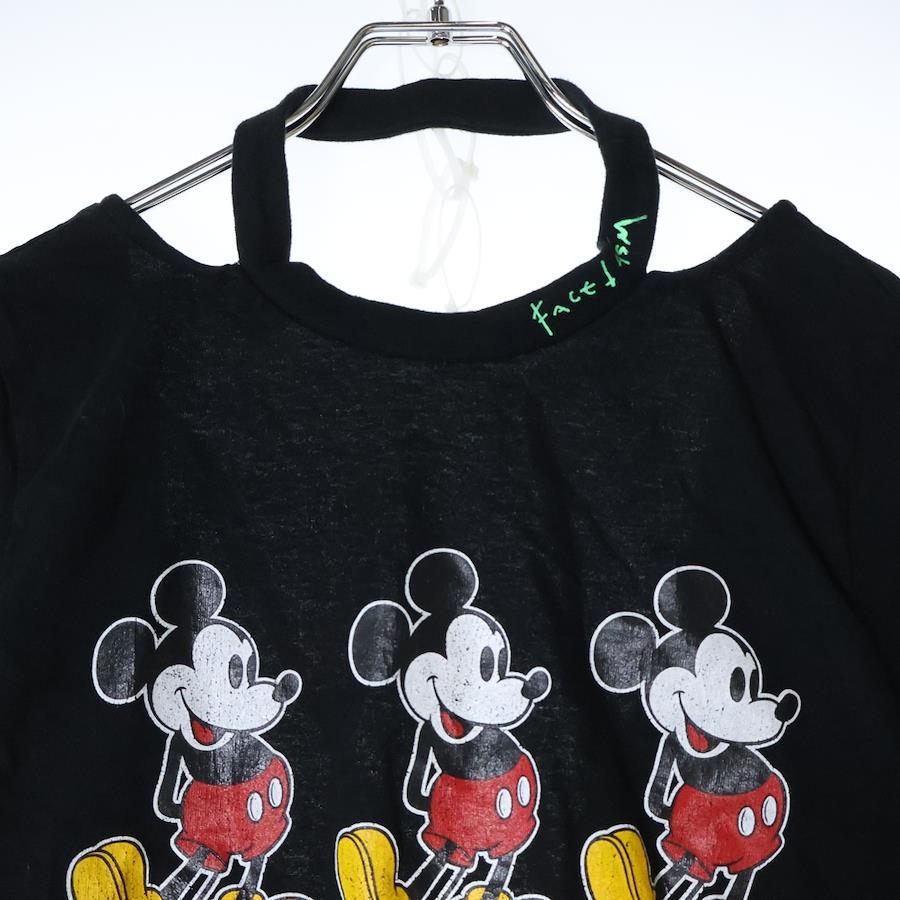 [モデル]×DISNEY MICKEY TEE WITH OPEN-BACK ディズニー ミッキー プリント オープンバック ショートスリーブ カットソー 半袖 Tシャツ レディース MIMI-TEE-W05