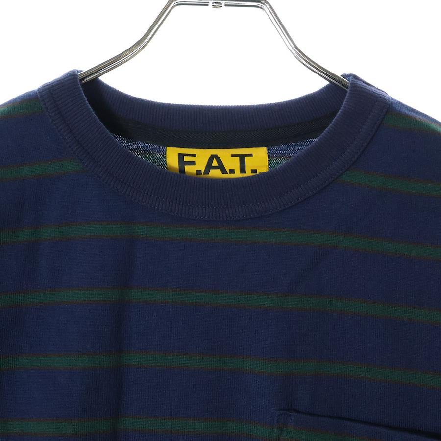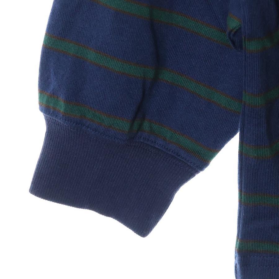 [モデル]ポケットロゴ刺繍 クルーネック ボーダー 長袖Tシャツ カットソー ネイビー/グリーン F32420-CT21-AB
