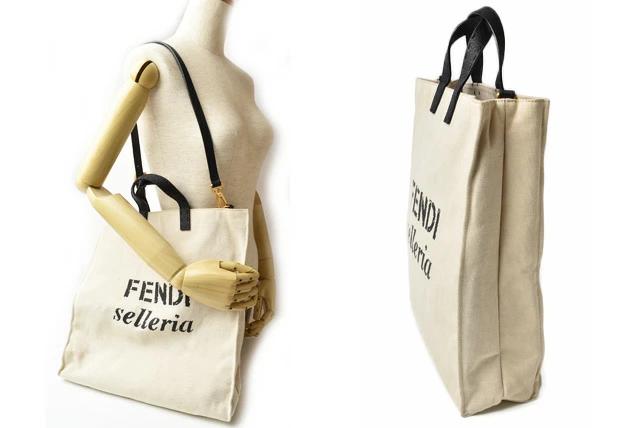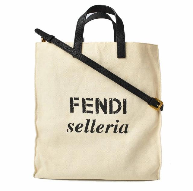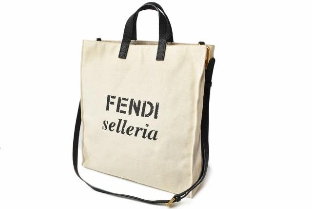 FENDI 2wayトート ロゴ キャンバス ショルダーストラップ付 ナチュラル