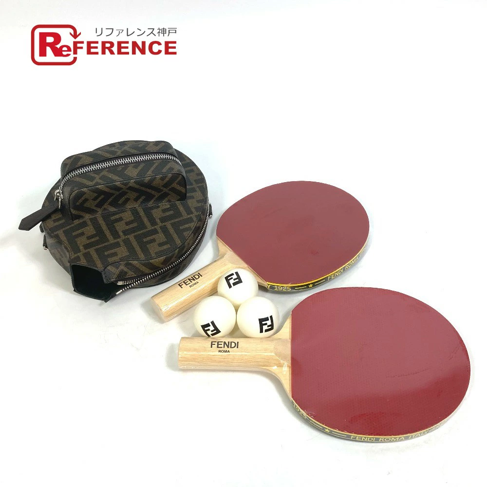 | 商品説明 | ボール用のジップポケットを備えたラケットケース、ハンドルにFENDIのロゴが入ったラケット、FFロゴ入りボール3つを組み合わせたピンポンセット。ブラウンとタバコカラーのFFモチーフをあしらった立体感のあるファブリックを使用。ブラウンのレザーディテール。 |