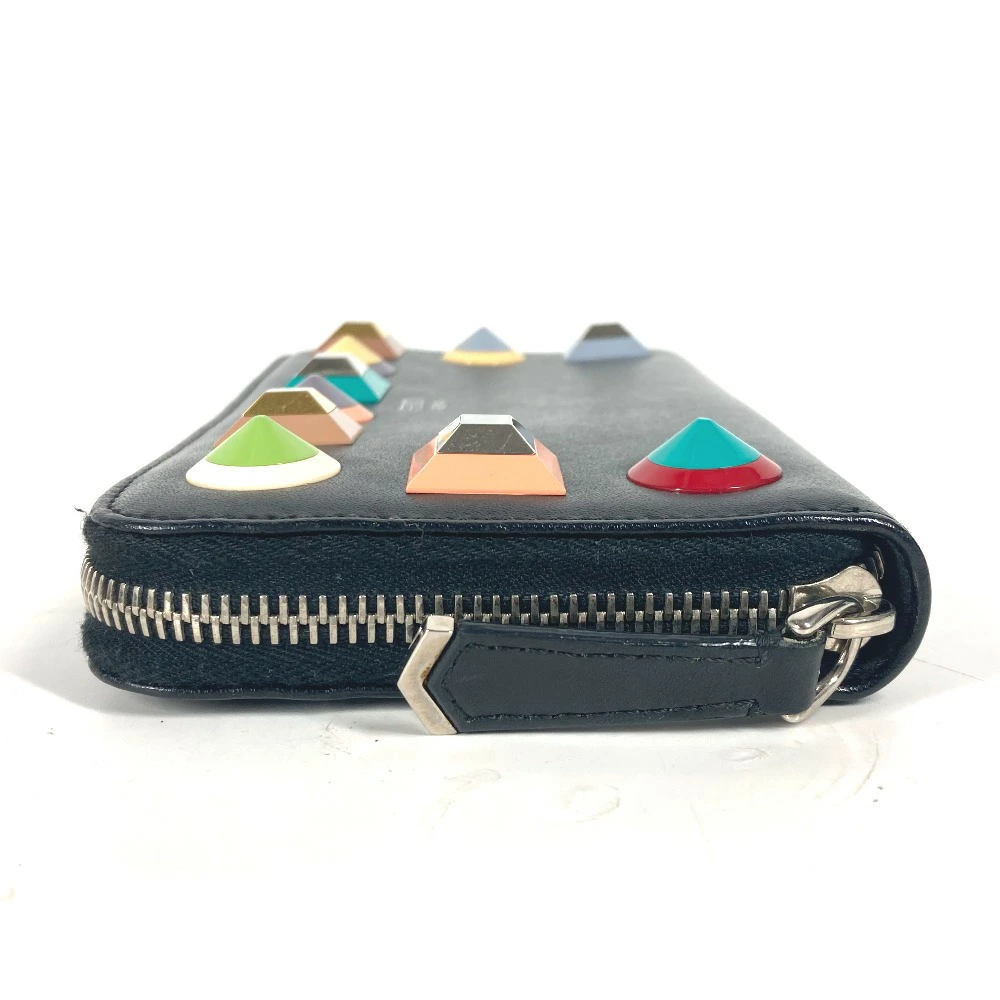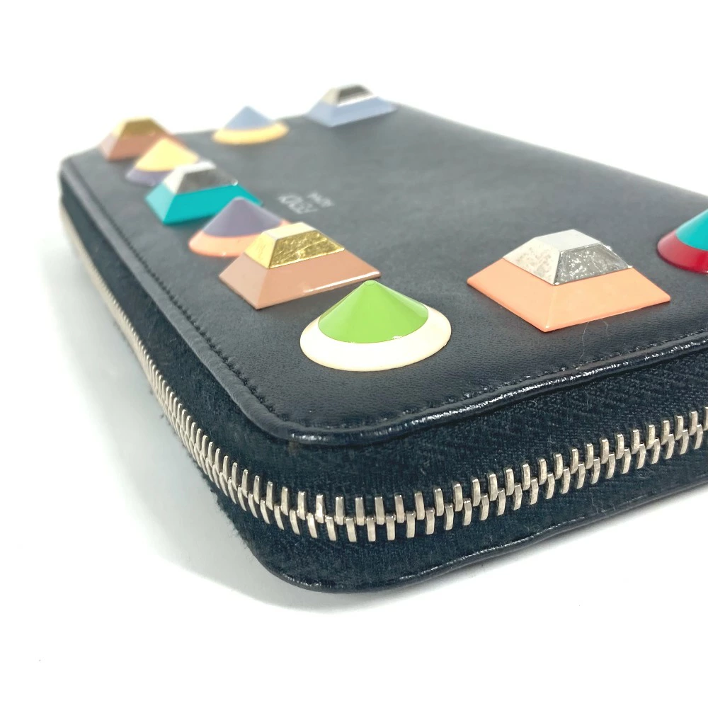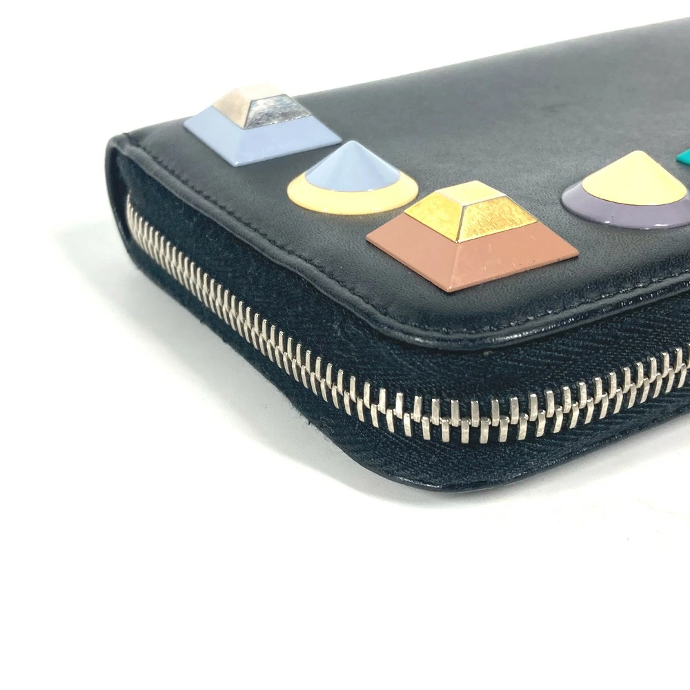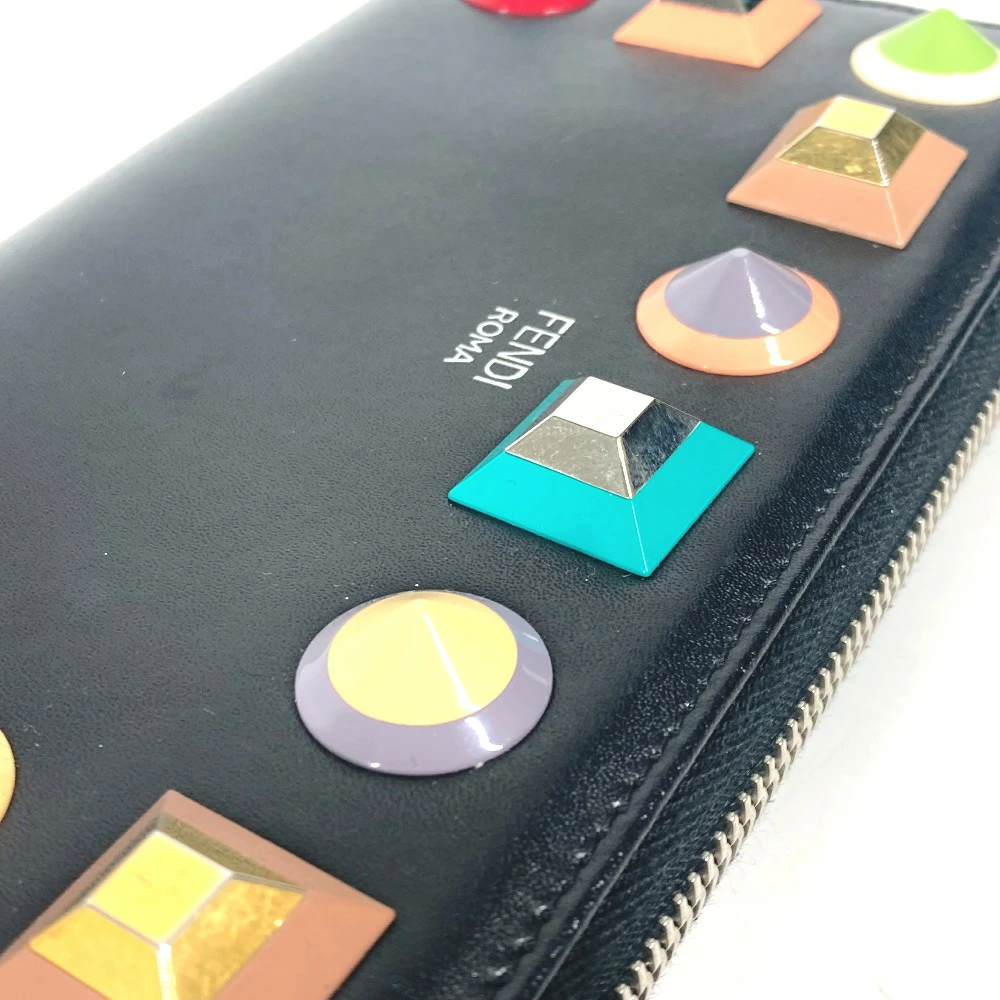 FENDI 8M0299 Long Wallet with Studs and Zip-Around Design, Leather, Unisex, Black [Pre-owned]