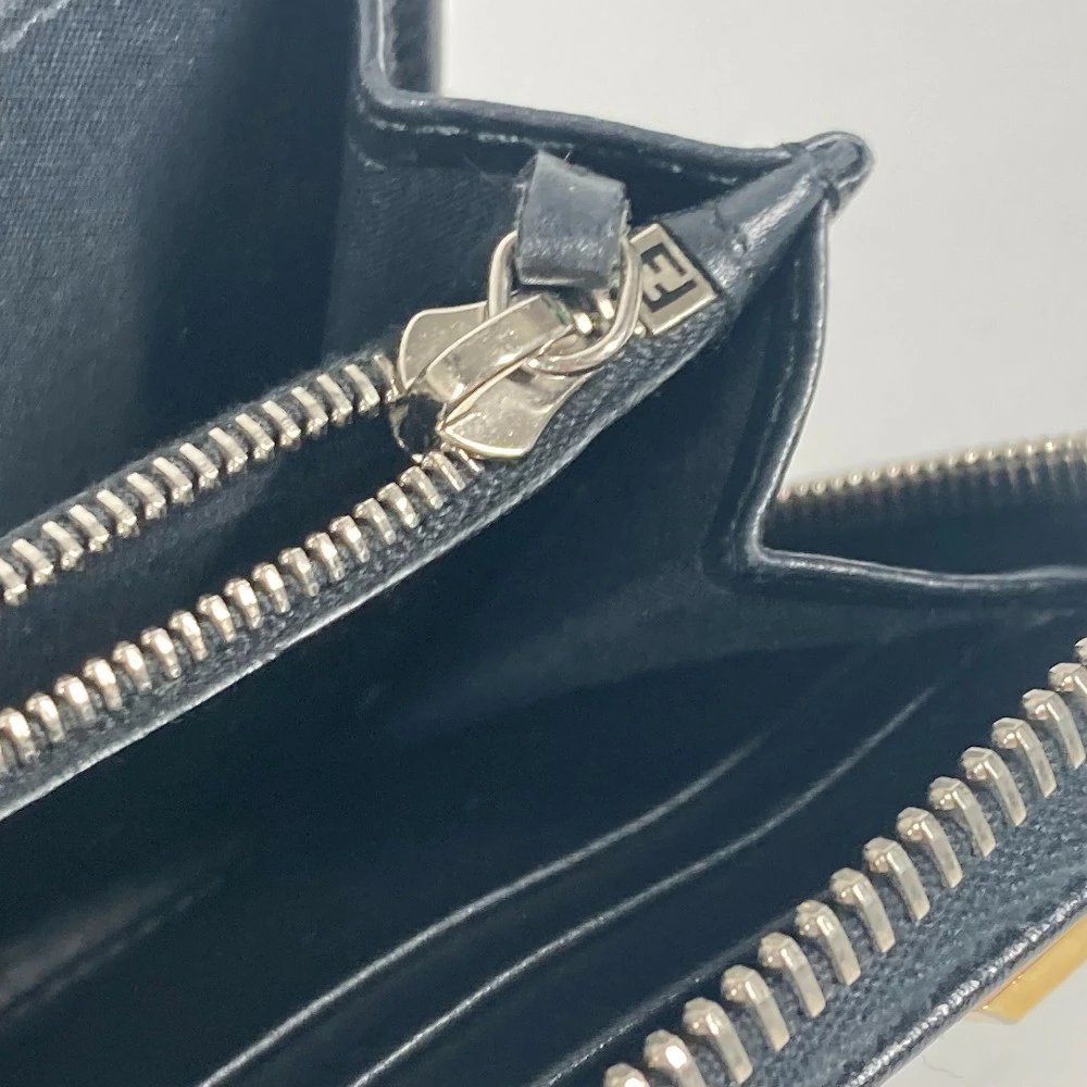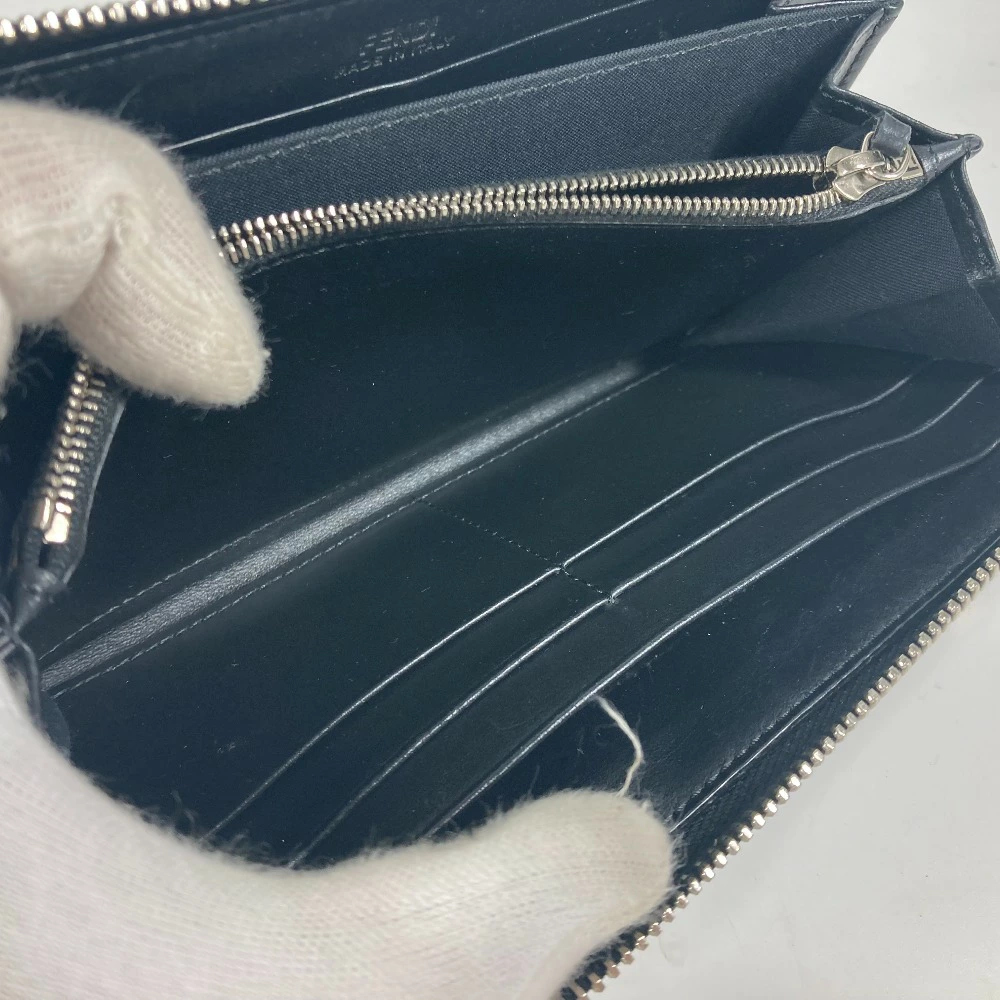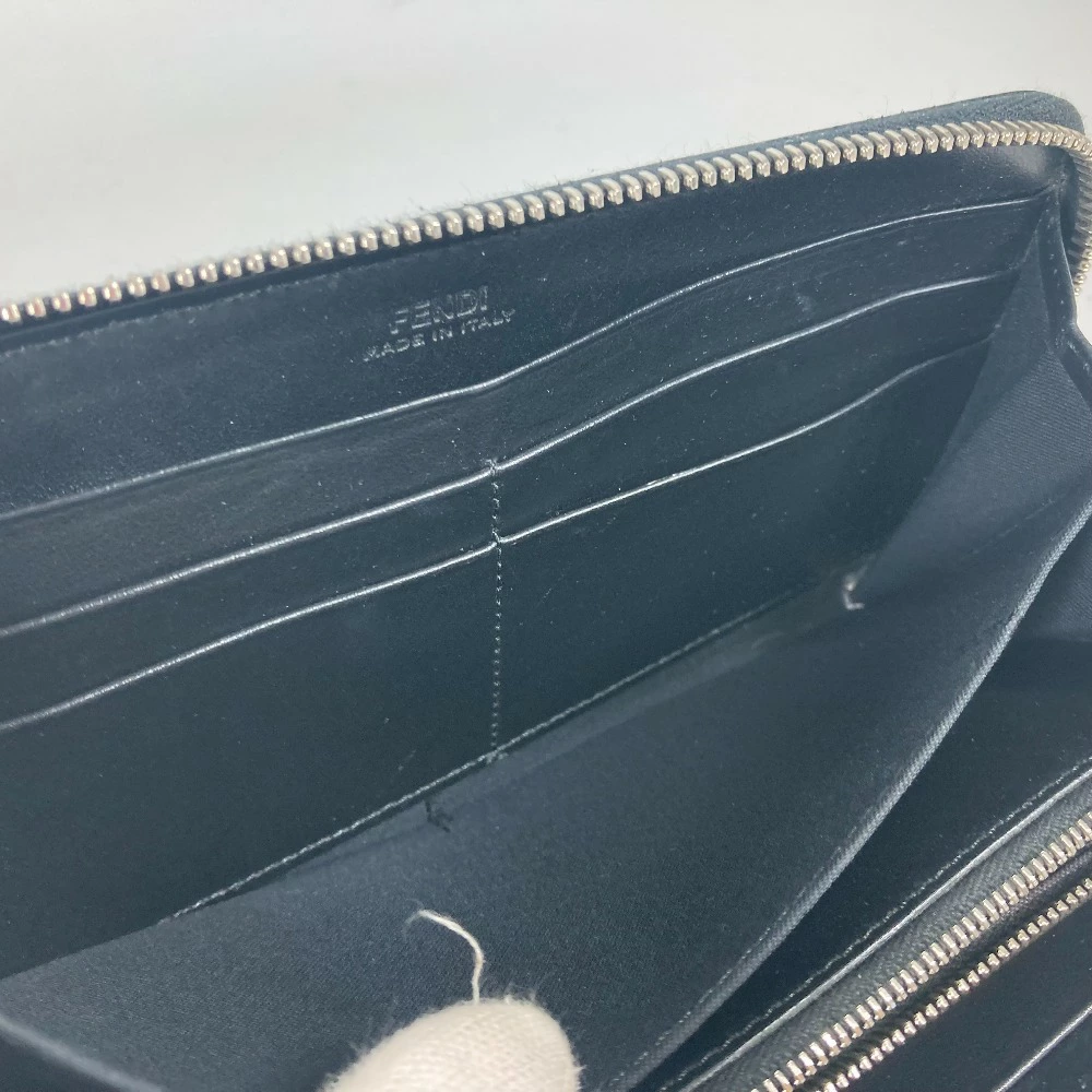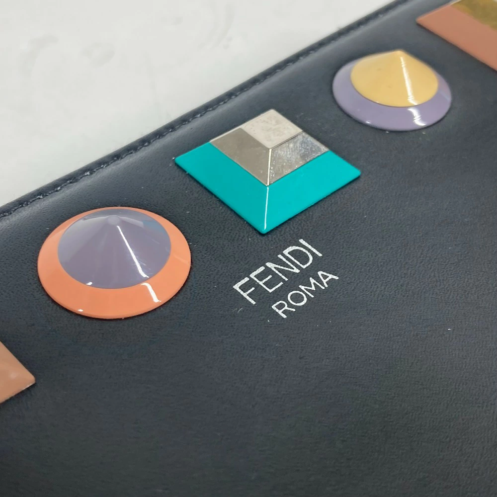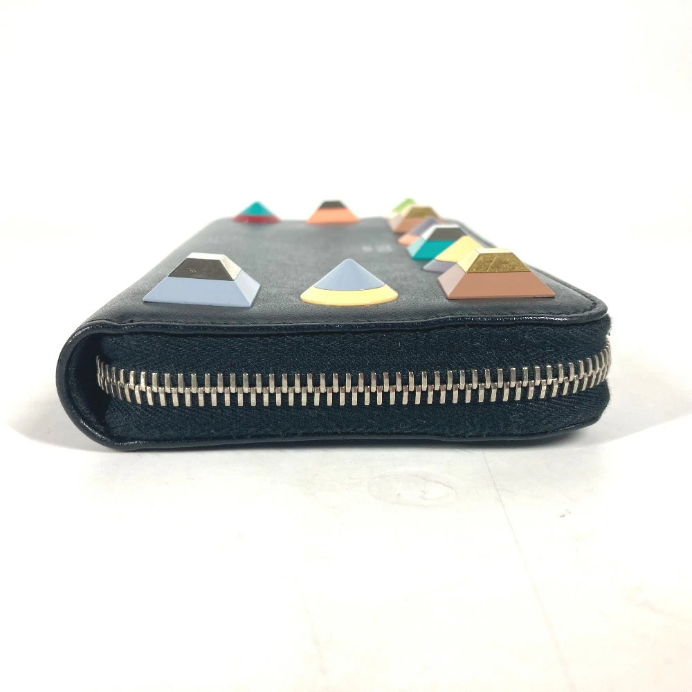 FENDI 8M0299 Long Wallet with Studs and Zip-Around Design, Leather, Unisex, Black [Pre-owned]
