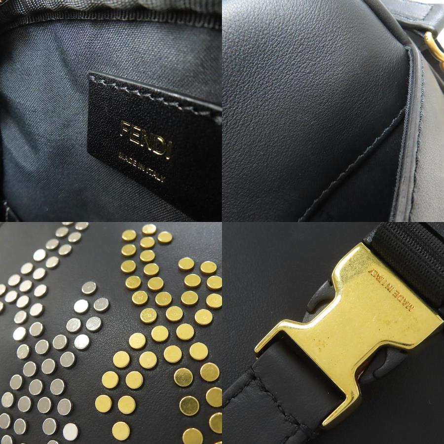 Fendi Calligraphy Studded Shoulder Bag, Leather, Women's [Used] [FENDI]