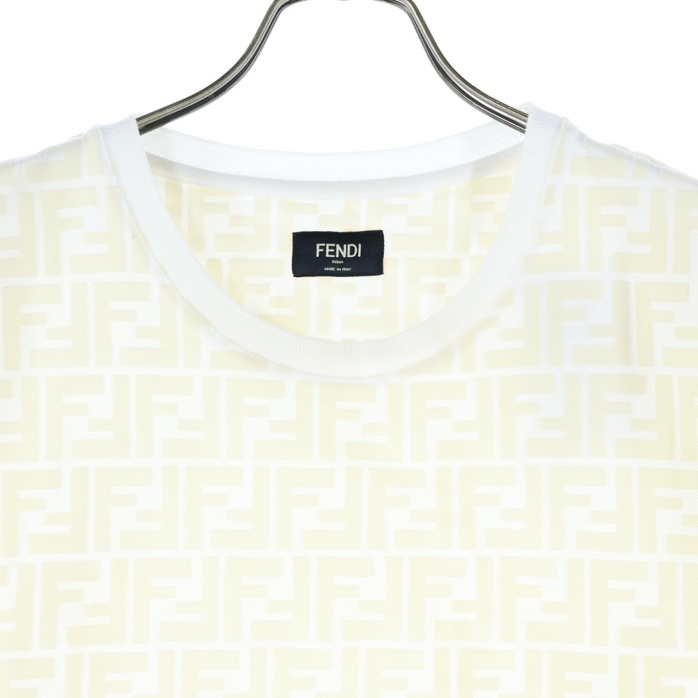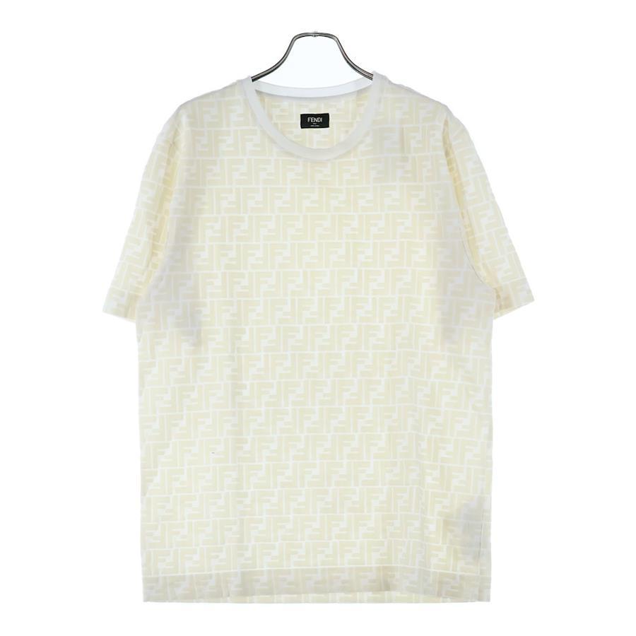 [モデル]FFロゴ 総柄プリント 半袖Tシャツ カットソー ホワイト FY0936 A7D5