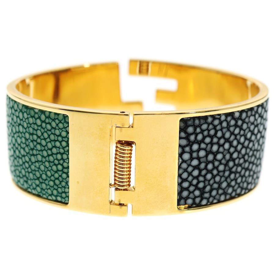 Fendi FF logo bangle bracelet in gold, black, and green (GP L, gold/black/green)