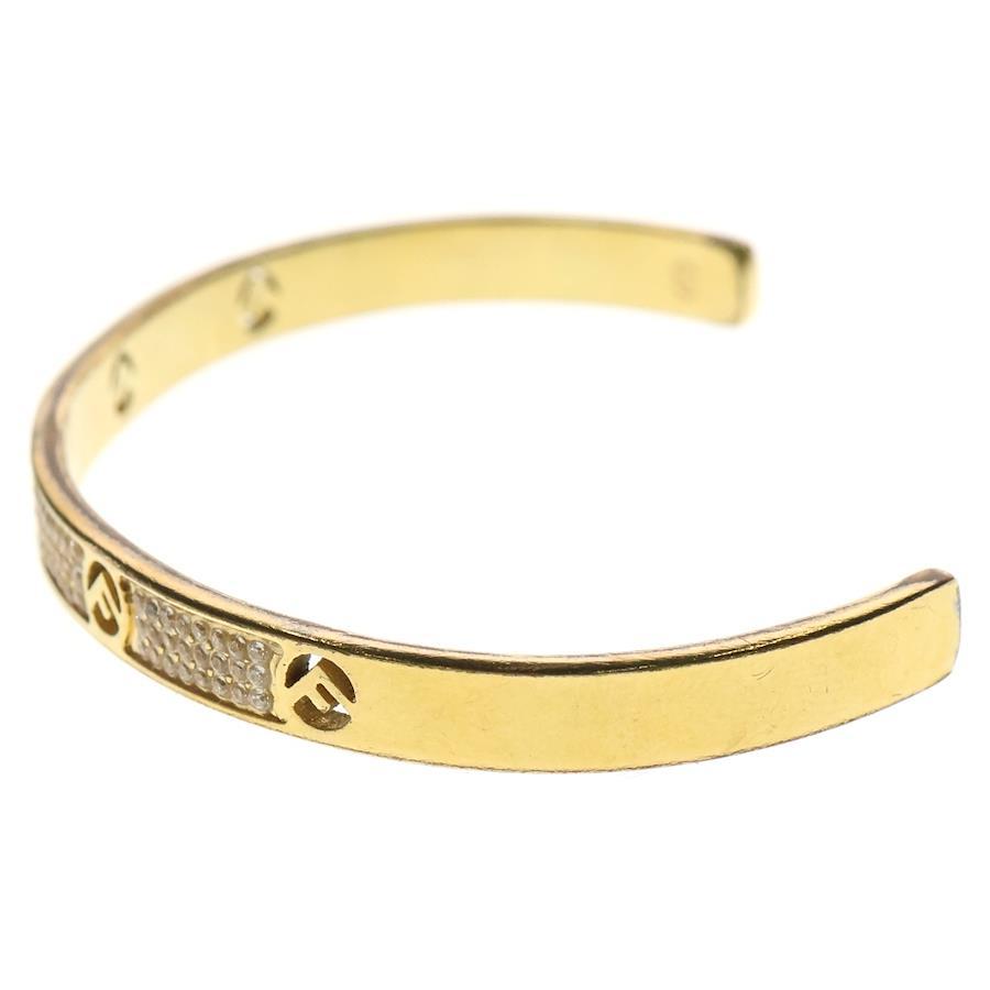 ■商品情報[商品番号]9725H290014[ブランド]FENDI(フェンディ)[モデル]エフイズ ラインストーン バングル ゴールド GP イエローゴールド[サイズ]手首周り:19センチ (本体内周:14センチ スリット:5センチ) 幅:59.1ミリ 重さ:11.52グラム表記サイズ:S■状態・コンディション[状態ランク]ランク B使用感有り全体的に傷有りラインストーン部分に一部欠損有り