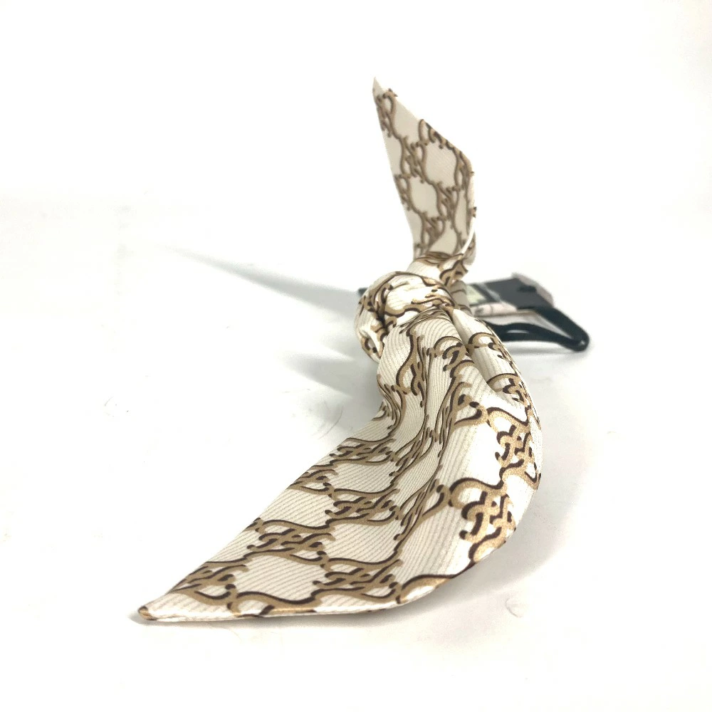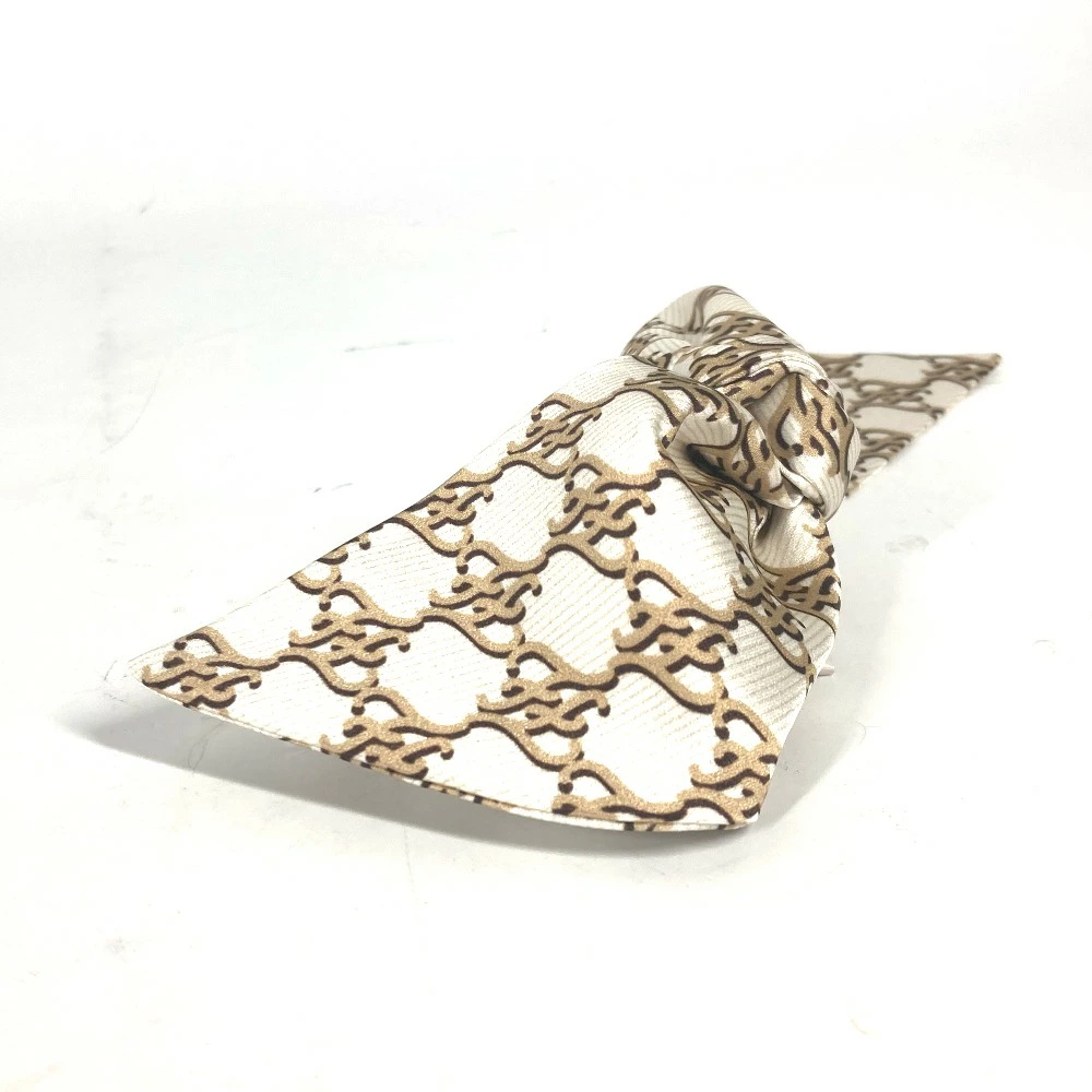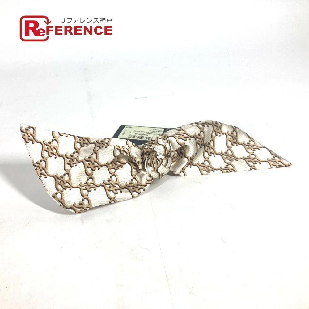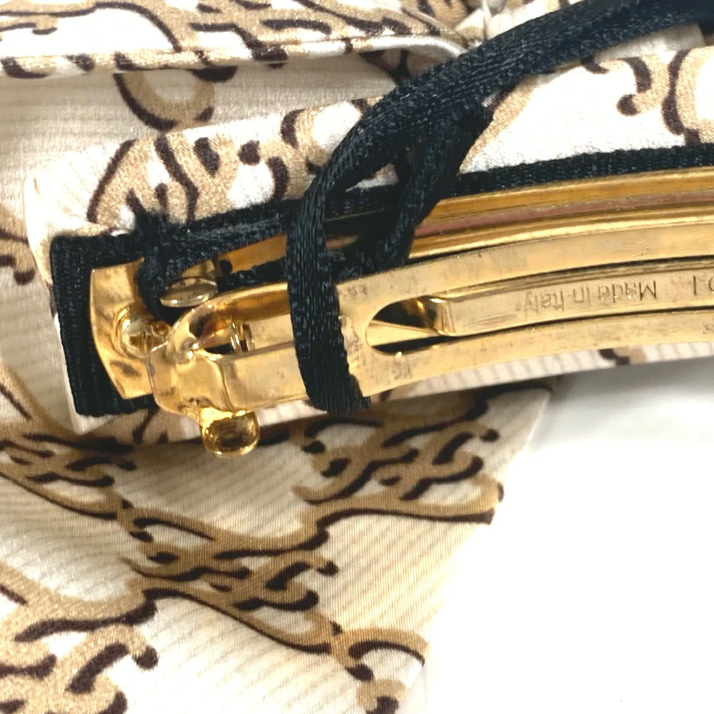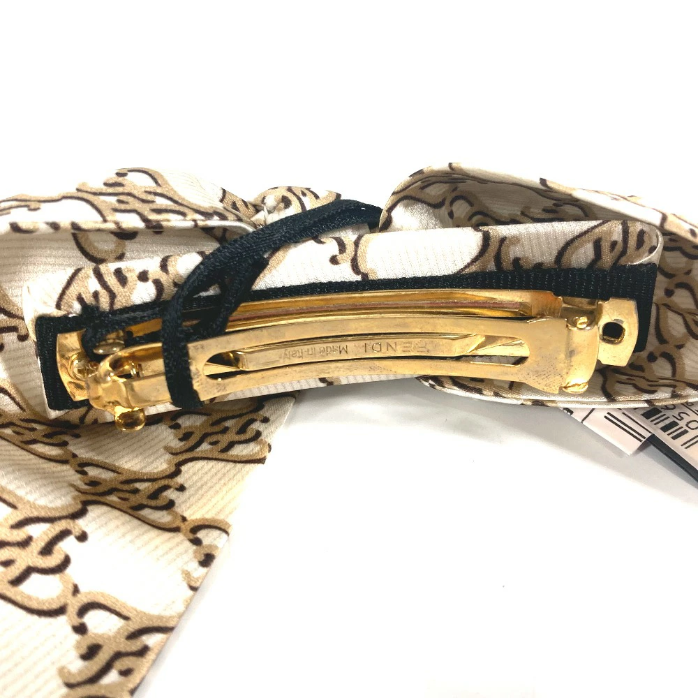 FENDI FXT114 Logo Ribbon Hair Clip, Hair Accessory, Silk Barrette, Women's, Beige [Pre-owned]