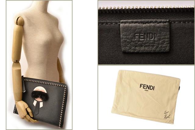 FENDI Karlito Clutch Bag/Second Bag FENDI Karl Lagerfeld Black/Silver L-shaped Zipper [Used] [Reused Brand Coupon] Limited number available at participating stores!