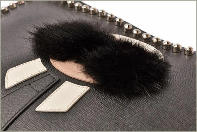 「カーリト」が フロントに配置されたキュートなクラッチバッグ。ハリのある上質なエリートカーフスキンで作られたボディに、 同レザーとミンクファーで構成されたアイコンとスタッズを打ち込みラグジュアリー感を感さえます。