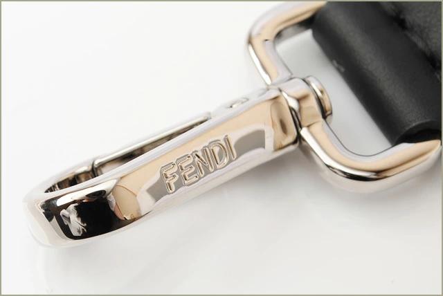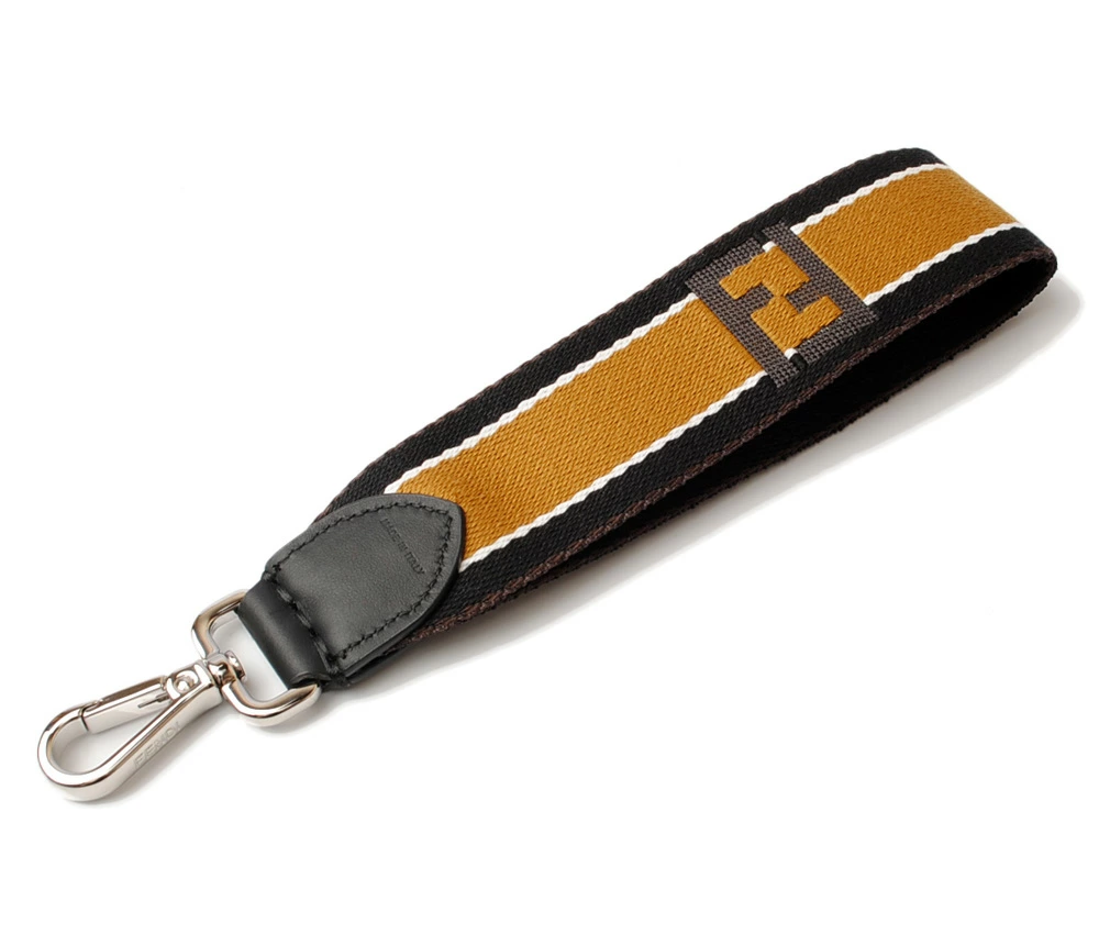 FENDI/フェンディより、ナスカン付きのキーホルダー。ラインと、ダブルFロゴがあしらわれています。メタル部分はパラジウム仕上げ。