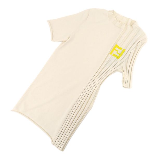 ■採寸#44 肩幅:34cm 袖丈:23cm B:68cm 着丈:65cm■素材コットン70% ポリウレタン30%■コメントフェンディからニットトップスが入荷しました!左側に施された立体的なプリーツ加工がオシャレなアシンメトリーなデザイン☆イエローカラーのFFロゴが爽やかな差し色となっており、シンプルながらも個性が光るアイテムです!裾や袖の丸まり、リブのヨレが見受けられる為Bランクでのご紹介となりました。目立つダメージや汚れはなく、まだまだ問題なくご着用いただけるかと思います◎