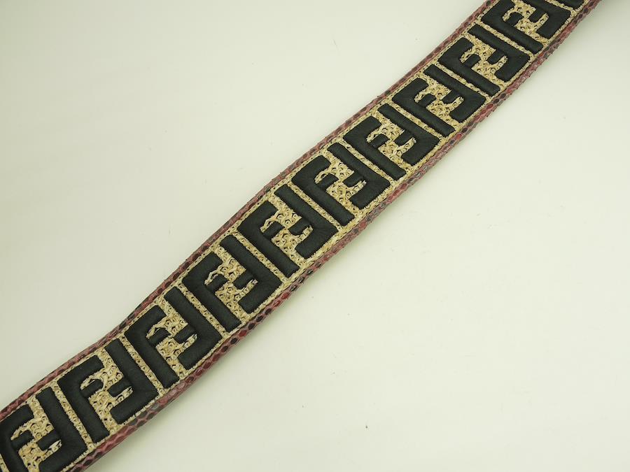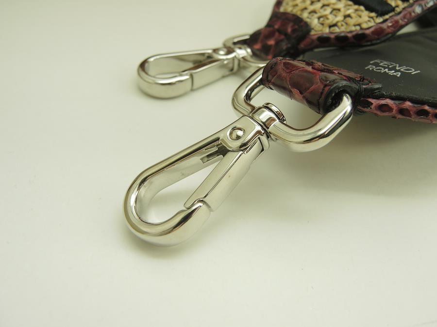 #Fendi #ShoulderStrap #Straw #Python #Leather #Black #Bordeaux #Natural #75%new #authentic #FF #motif #Long #Strap #Silver #secondhand #wholeSale #haibanya #aisai-jp #転売可