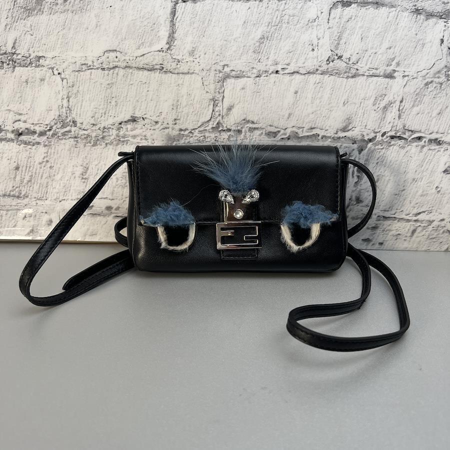 【アイテム】良品 FENDI フェンディ モンスター レザー ショルダーバッグ ブラック A-9566
