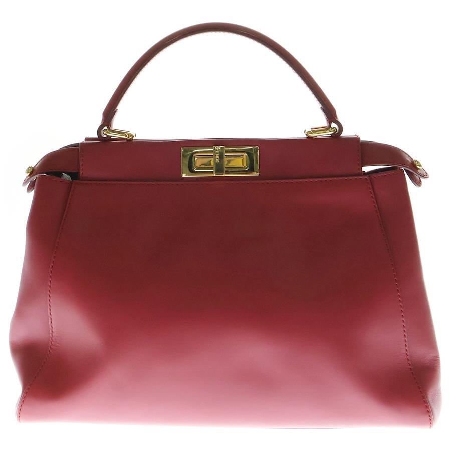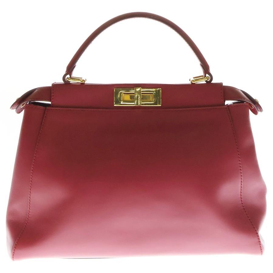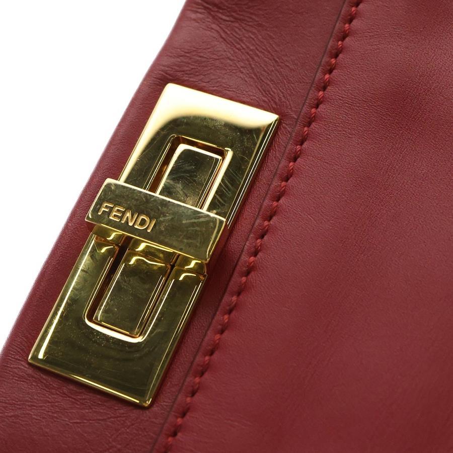 Fendi Peekaboo Selleria Medium Leather Bag with Beaded Dot Lining, 2-Way Handbag/Shoulder Bag, Gold Hardware, Red (8BN226)