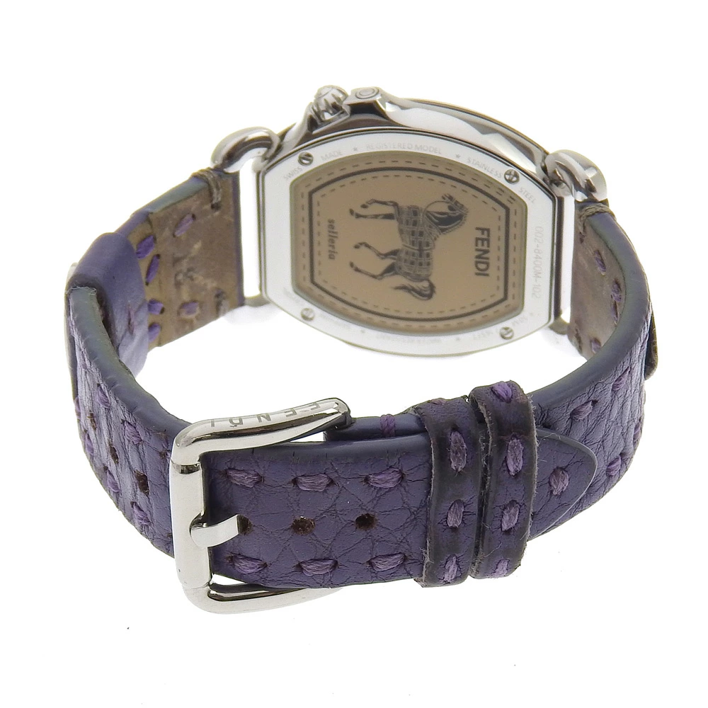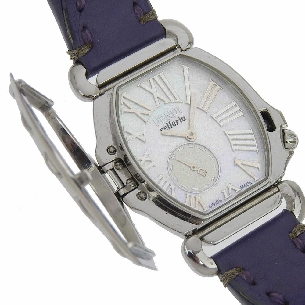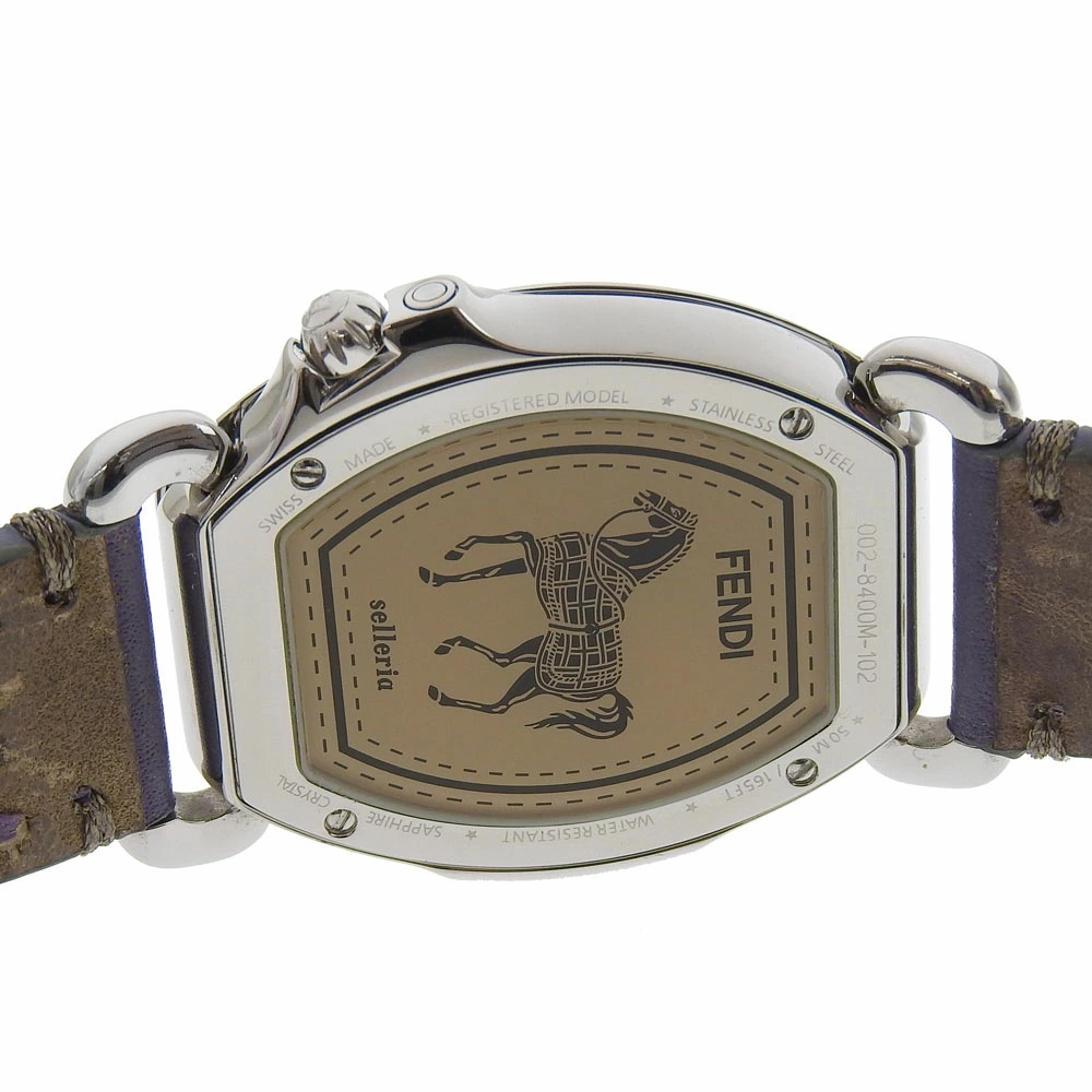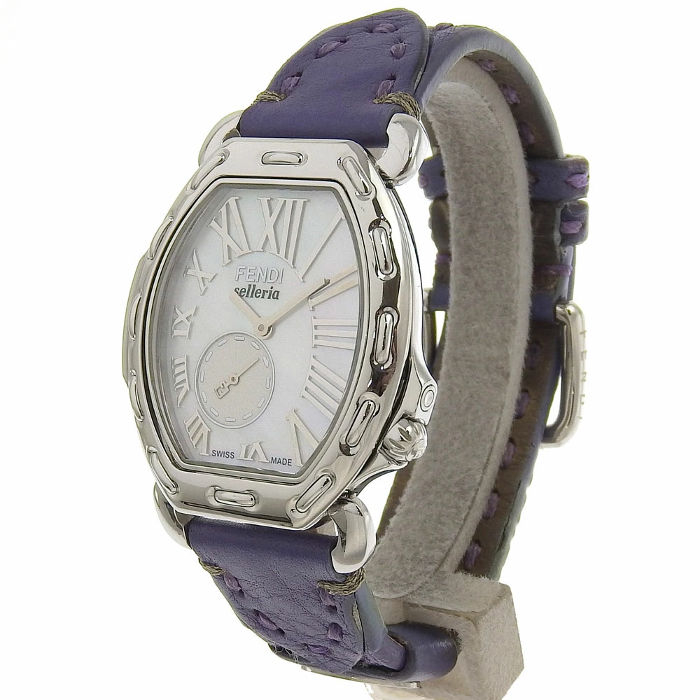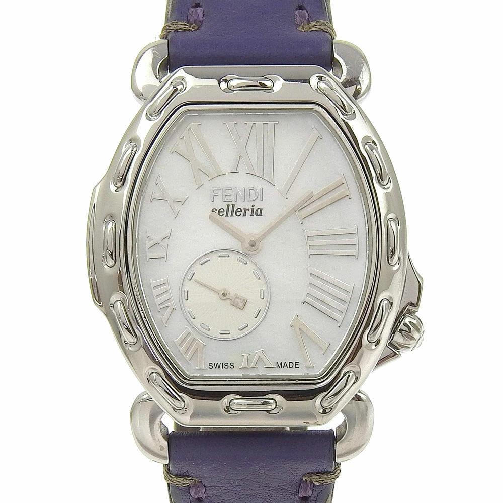 Fendi Selleria Watch 8400M Stainless Steel with Embossed Leather Strap, Swiss-Made Quartz Movement, Small Seconds, White Shell Dial, Boys' [Pre-owned] A-Rank