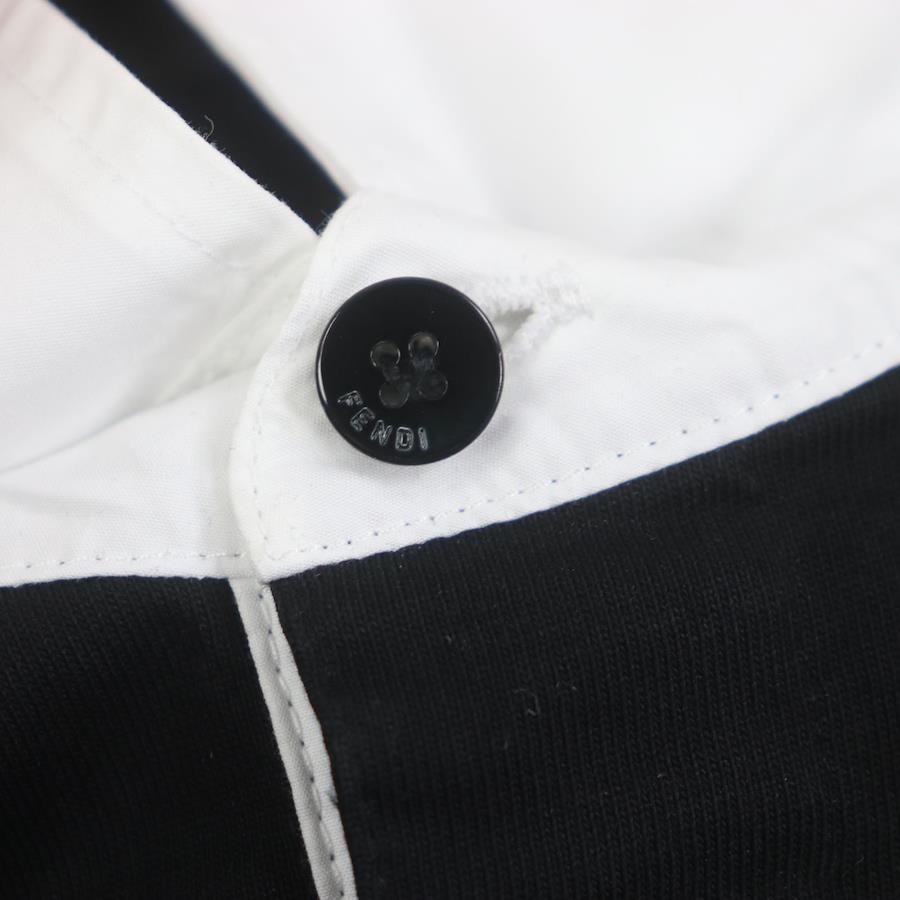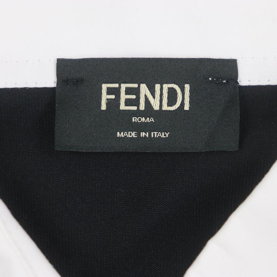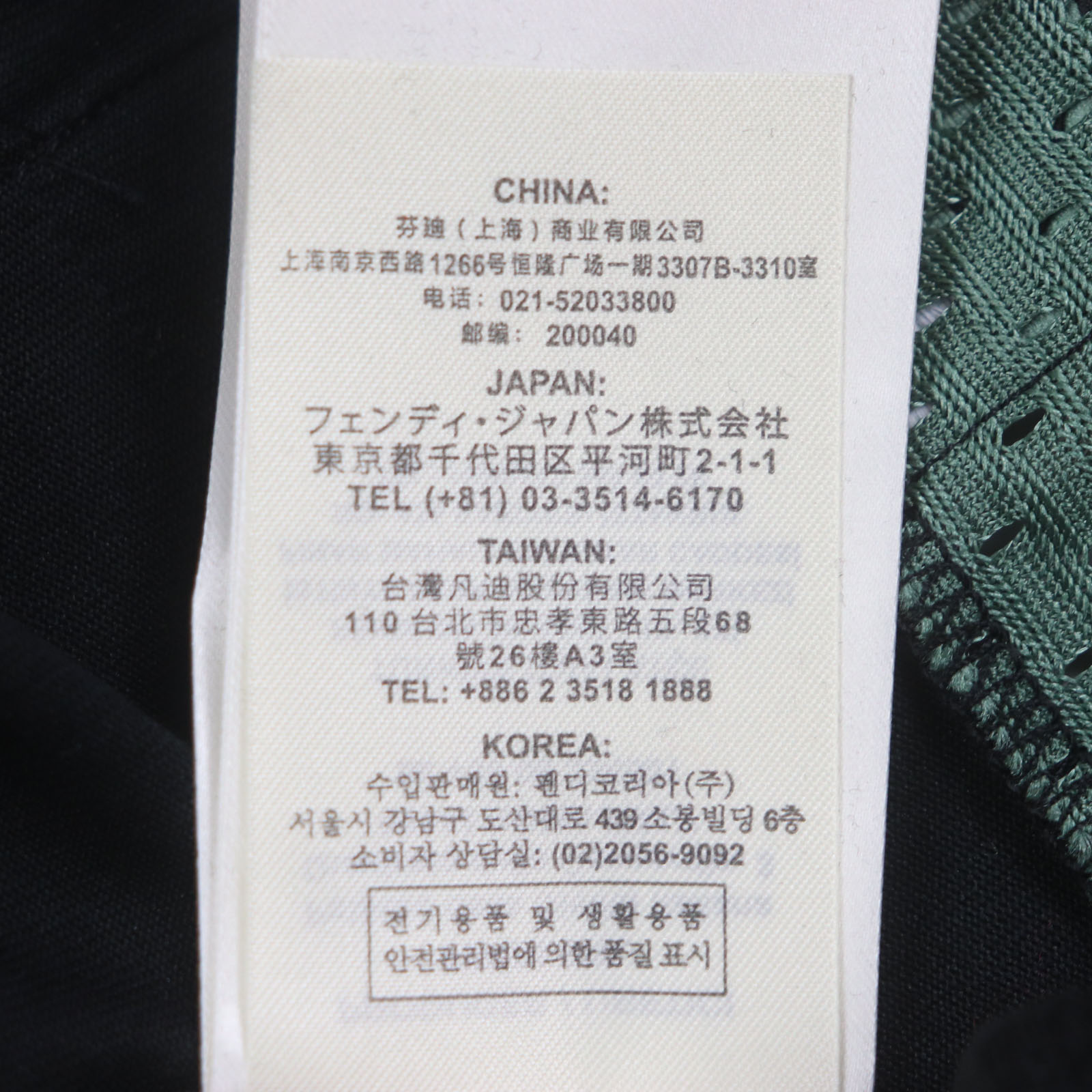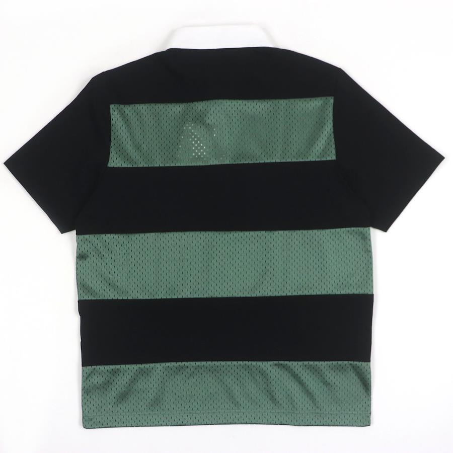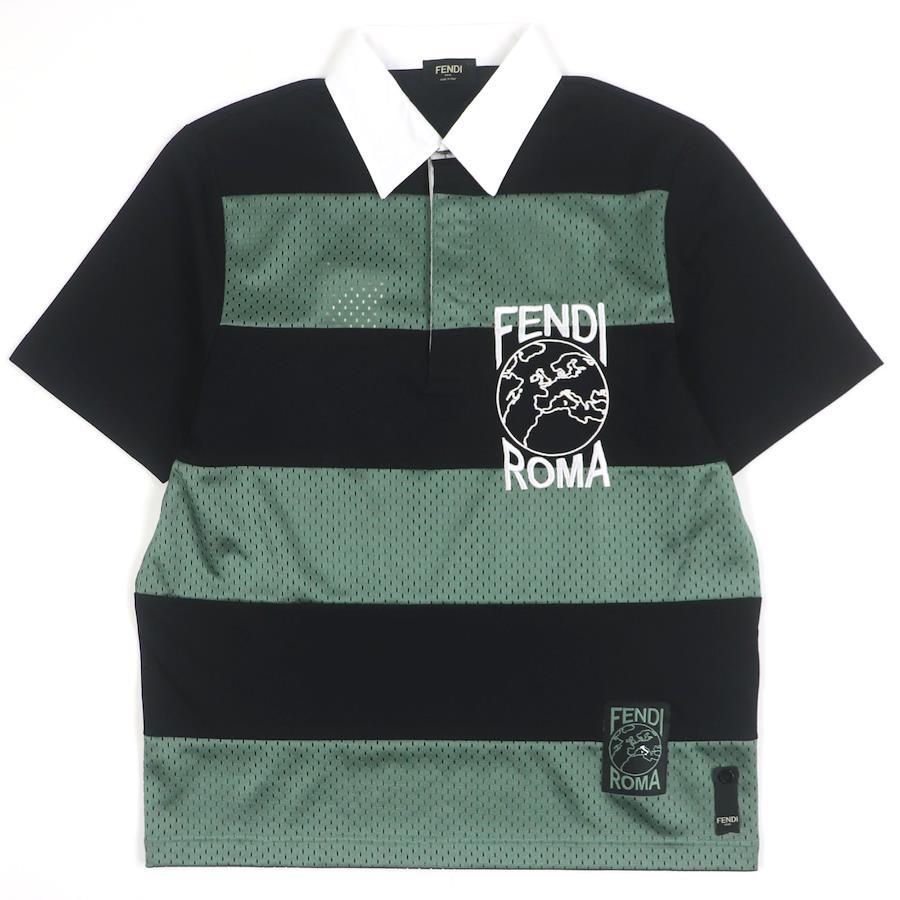 FENDI Short Sleeve Polo Shirt, Striped, Logo Embroidered, Mesh, Green, Black, Cotton, Polyester, FAF630