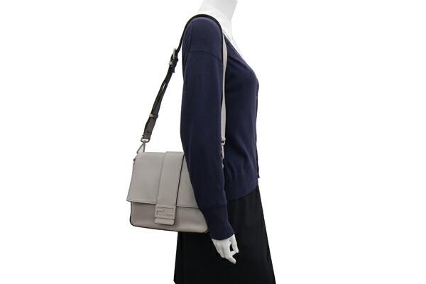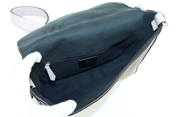 フェンディショルダーバッグバケットメッセンジャーミディアム7VA537グレージュレザー中古斜め掛け鞄レディース女性FFロゴFENDI