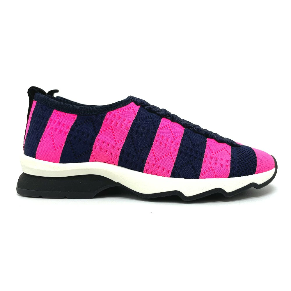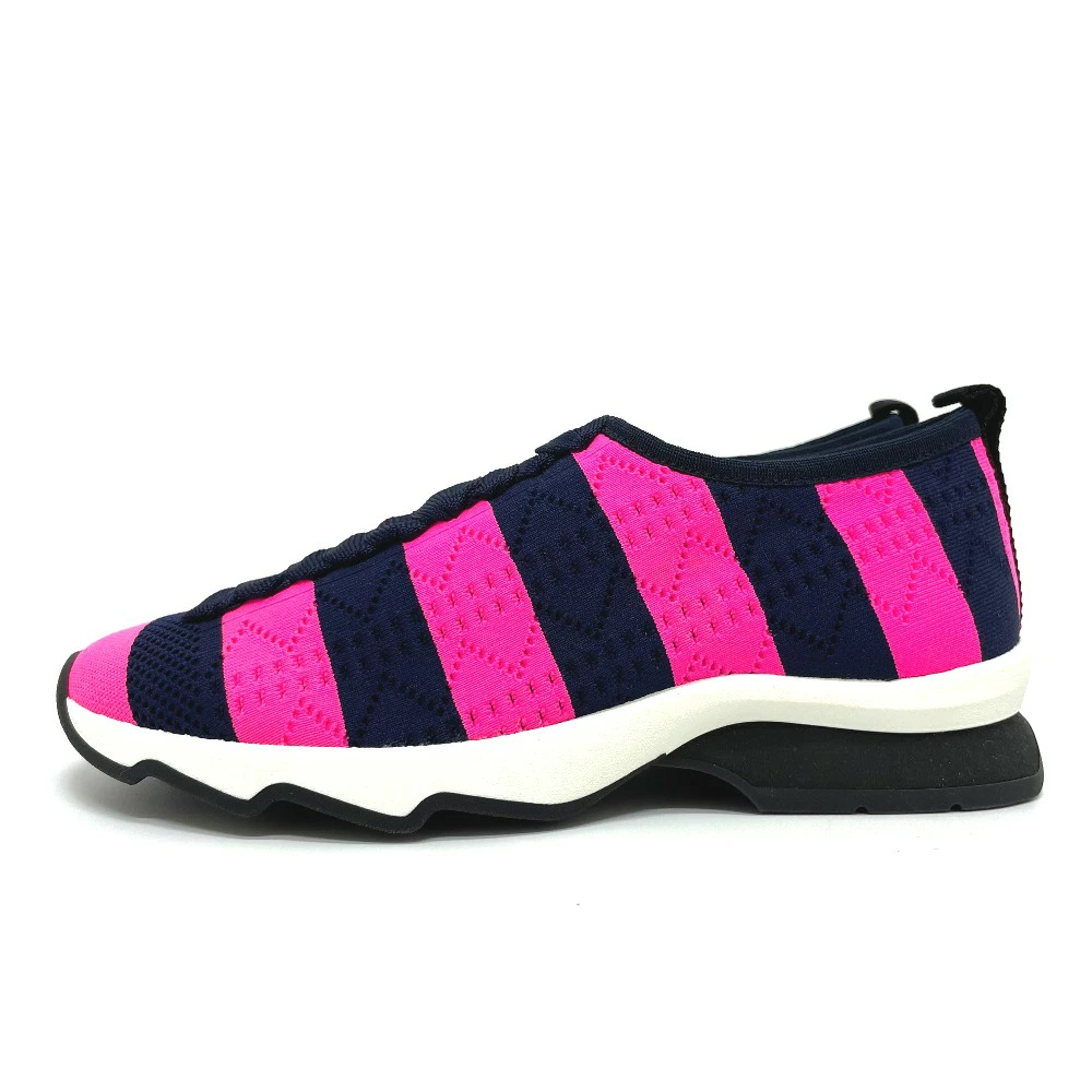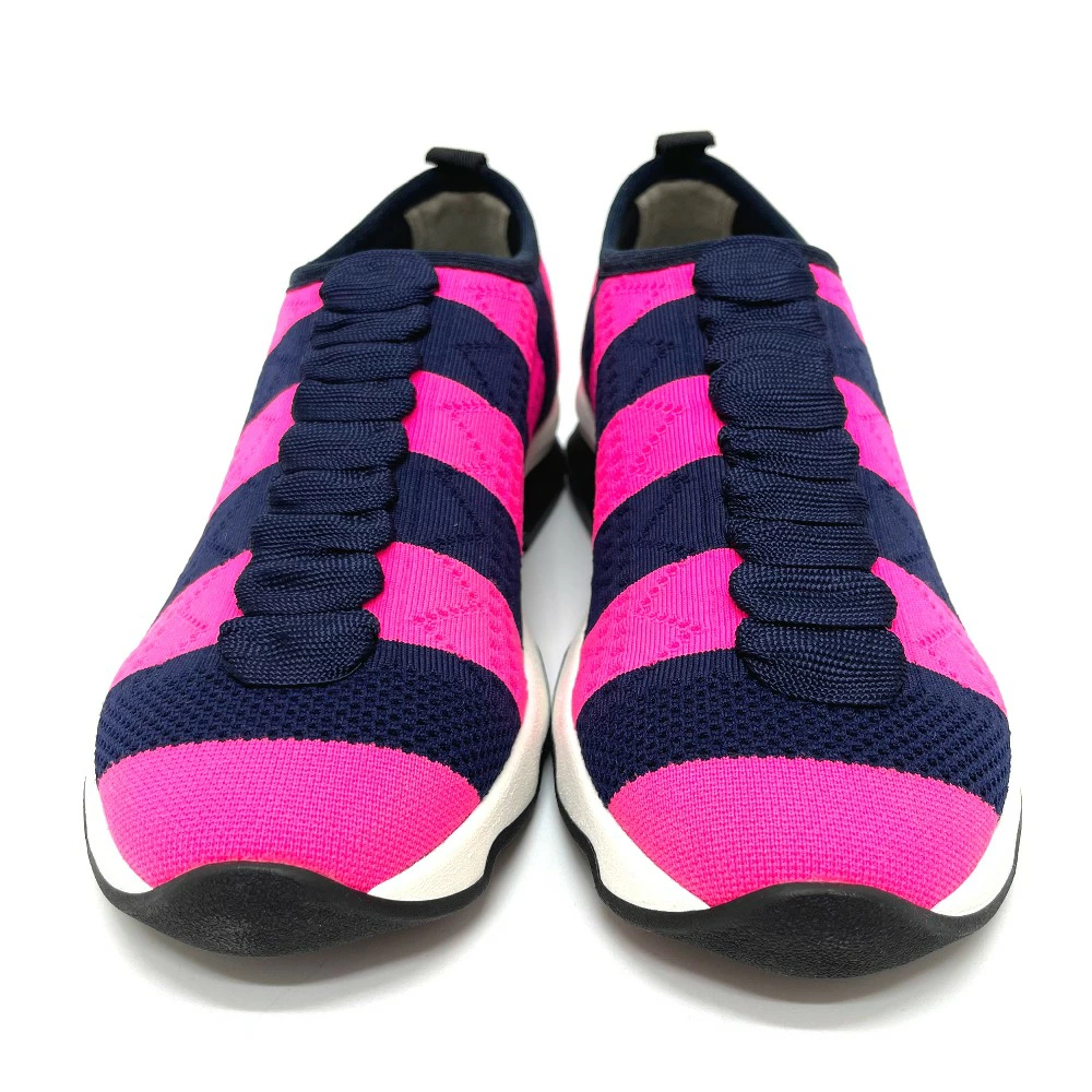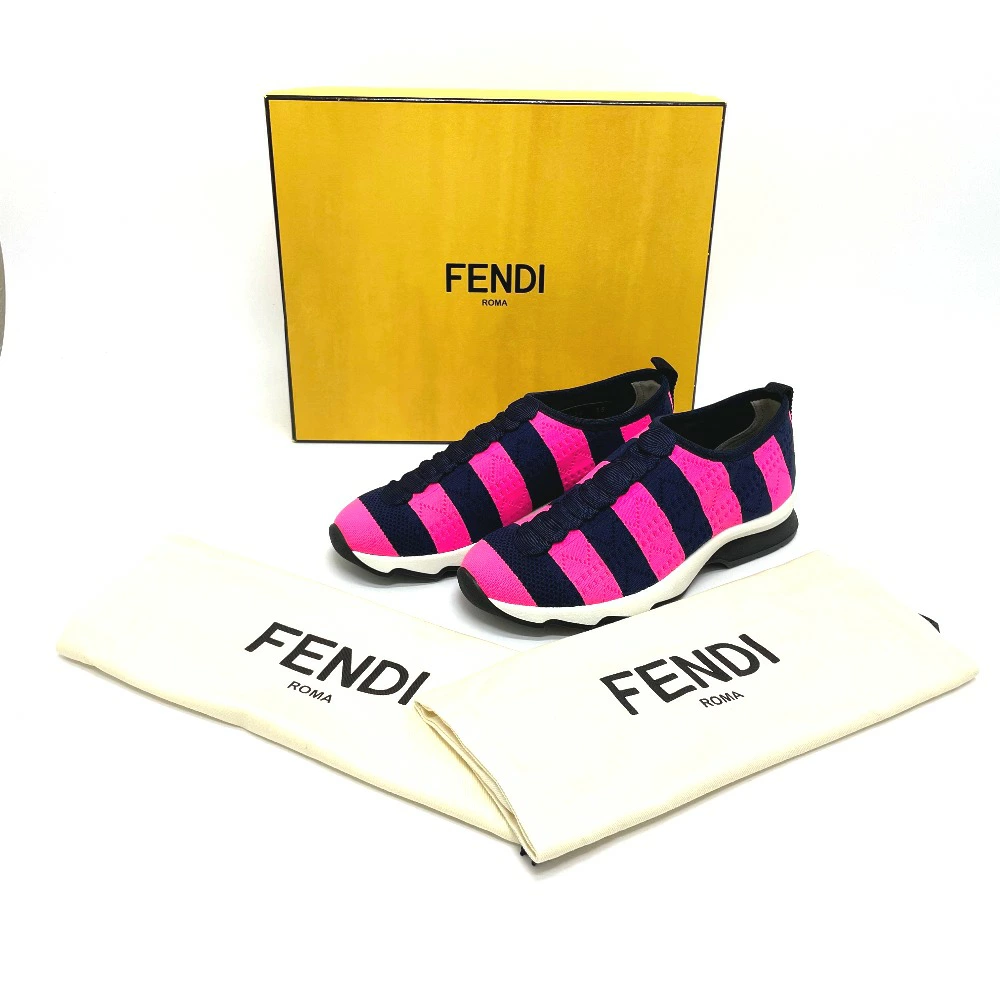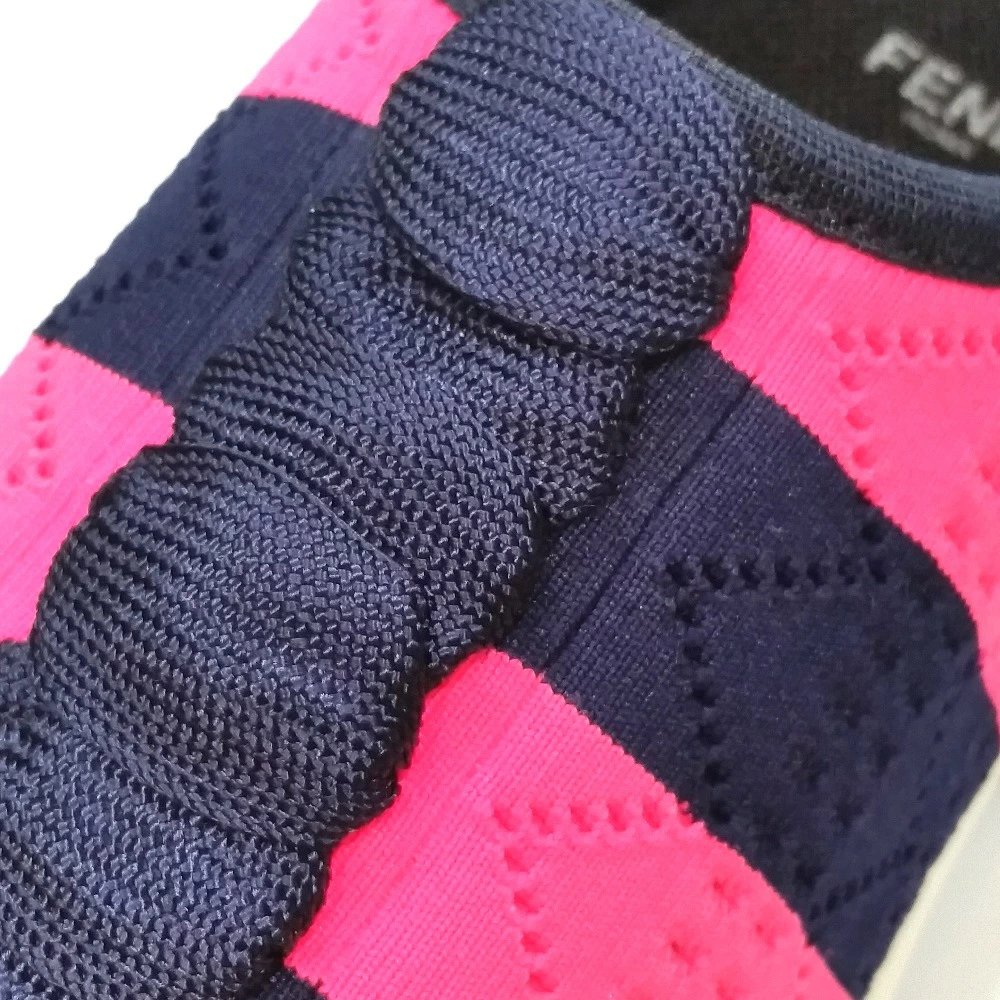 FENDI Striped Mesh Low-Top Sports Sneakers, Women's, Navy and Pink, Unused [Pre-owned]