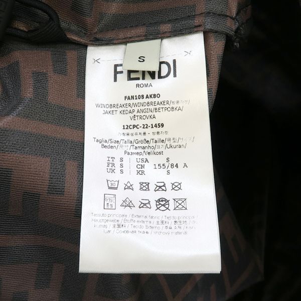 ■採寸#S 肩幅:49cm 袖丈:57.5cm B:108cm 着丈:40cm■素材ナイロン92% ポリウレタン8% ポリウレタン樹脂コーティング■コメント前身頃の大きなポケットがアクセントになったフェンディのナイロン地トップス!襟元のラバーロゴが付いていて襟や袖口はマジックテープで留めるデザインとなっております☆左肩前後や左肘・袖口などに白いスレ汚れが見受けられる為Bランクでの評価になりますがその他目立つようなダメージはなく着用頻度は少なめのお品物かと思います。裏側は定番ズッカ柄なのがさり気なくてオススメの一着です☆
