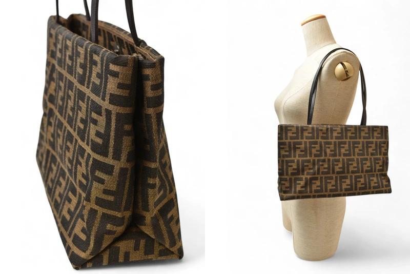 商品説明 | フェンディ トートバッグです。永遠のアイコン、ズッカ柄。実用性とファッション性を兼ね備えたフェンディの人気トート。軽量で収納力もあり、日常のお出かけはもちろん、お仕事やショッピングにも活躍する万能アイテムです。ブラウン系の落ち着いたカラーと、ブランドのアイデンティティを感じさせるデザインが、コーディネートに上品なアクセントを添えます。レザーハンドル付きで耐久性もあり、長くご愛用いただけます。 |