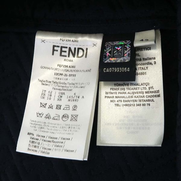 ■採寸#42 W72cm H98cm 着丈42cm■素材ビスコース80% シルク20%裏側 シルク100%■コメントフェンディからベロアスカートが入荷しました!左側面裾から10cm程上の所に糸の飛び出し、前身ごろ右裾から9cm程上に汚れ、ジッパーつまみに塗装剥げやスレキズ、ウエストにハンガー跡、右側面中心付近にスレ、全体にシワや収納跡、ヨレがみられるためBランク評価になります。