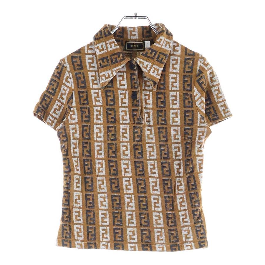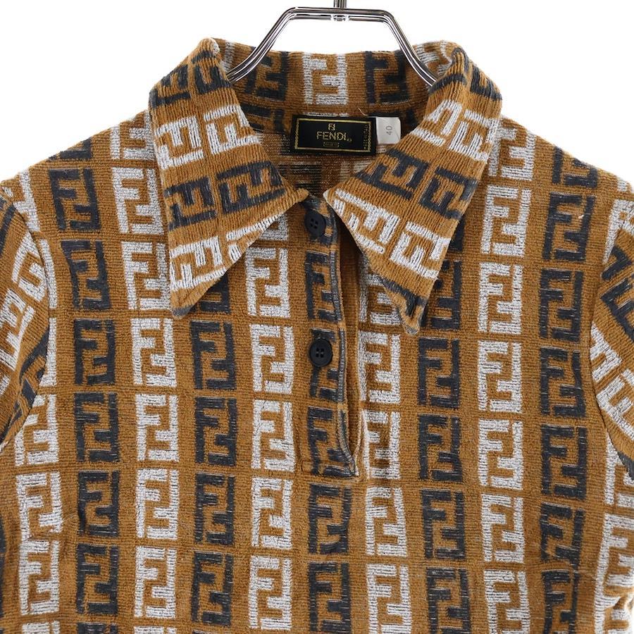 [モデル]VINTAGE 90s ズッカ総柄 コットンパイル地半袖ポロシャツ レディース ブラウン