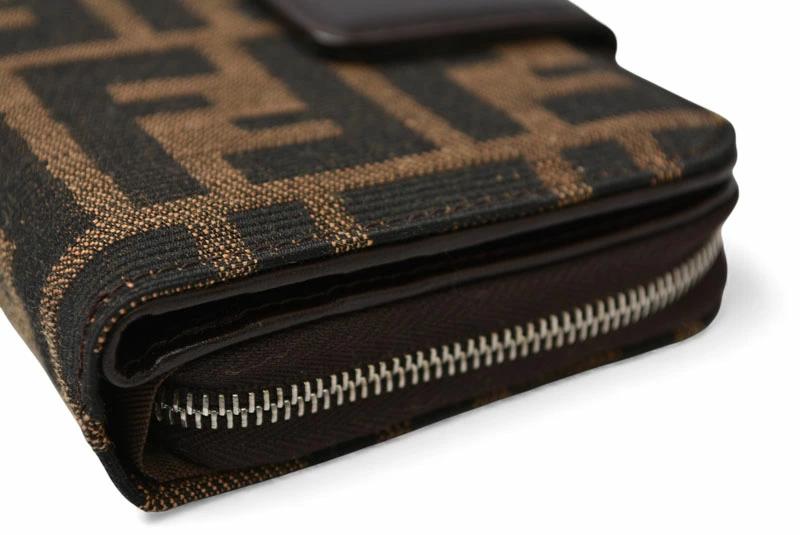 | 商品説明 | フェンディより、折財布です。FENDIのアイコニックなFFロゴ「ズッカ柄」を全面に施した、存在感あふれる長財布。クラシックなブラウンとアクセントのが絶妙に調和し、洗練されたモード感を演出します。機能性とファッション性を兼ね備えた、世代を問わず人気のウォレットです。 |