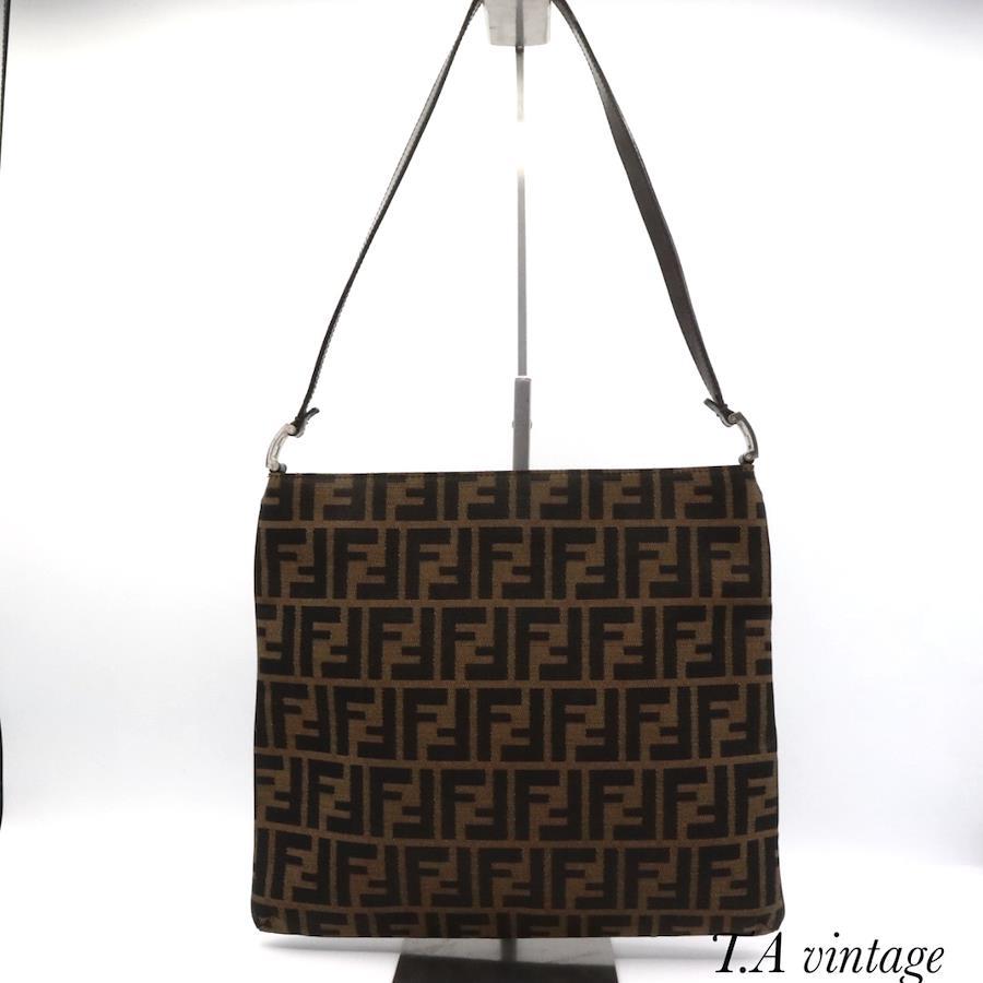 品名 ズッカ柄 キャンバス レザー ショルダーバッグ ブラウン