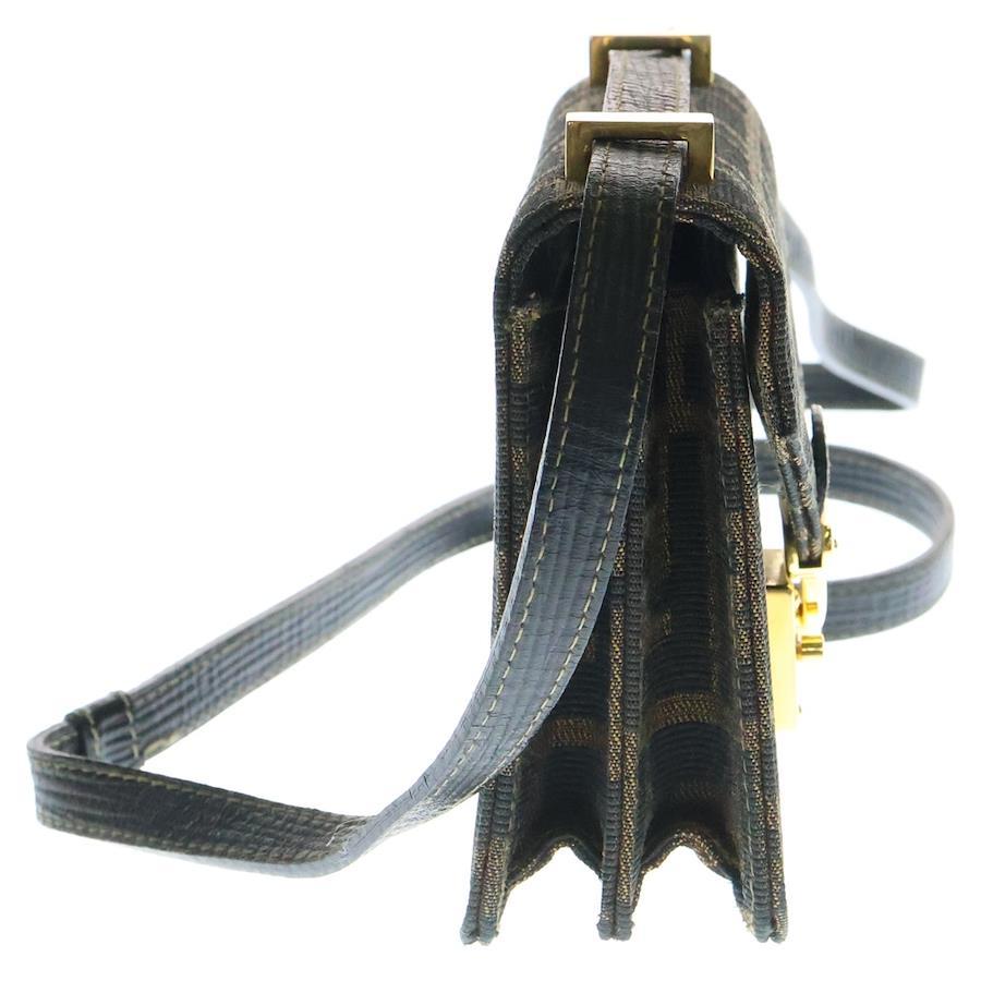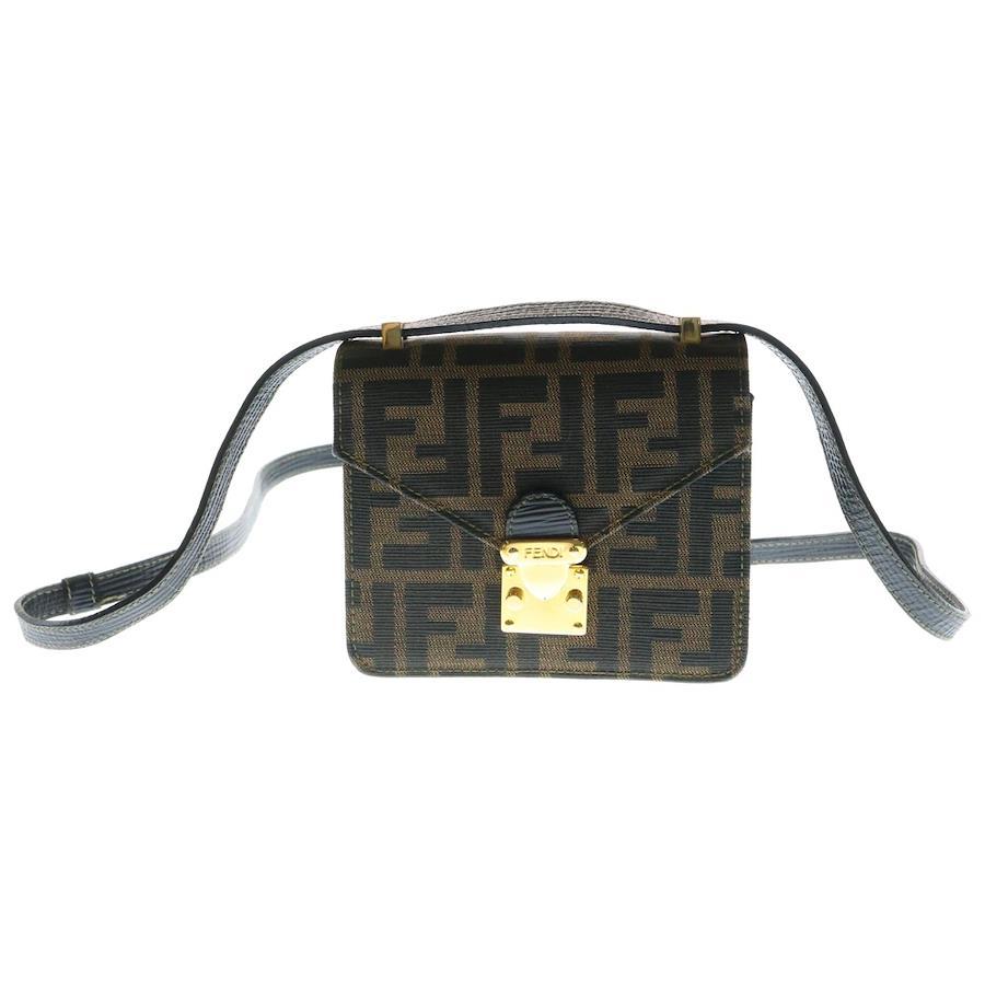 [モデル]ズッカ柄 ショルダーバッグ ミニバッグ ブラック×ブラウン ゴールド金具 キャンバス