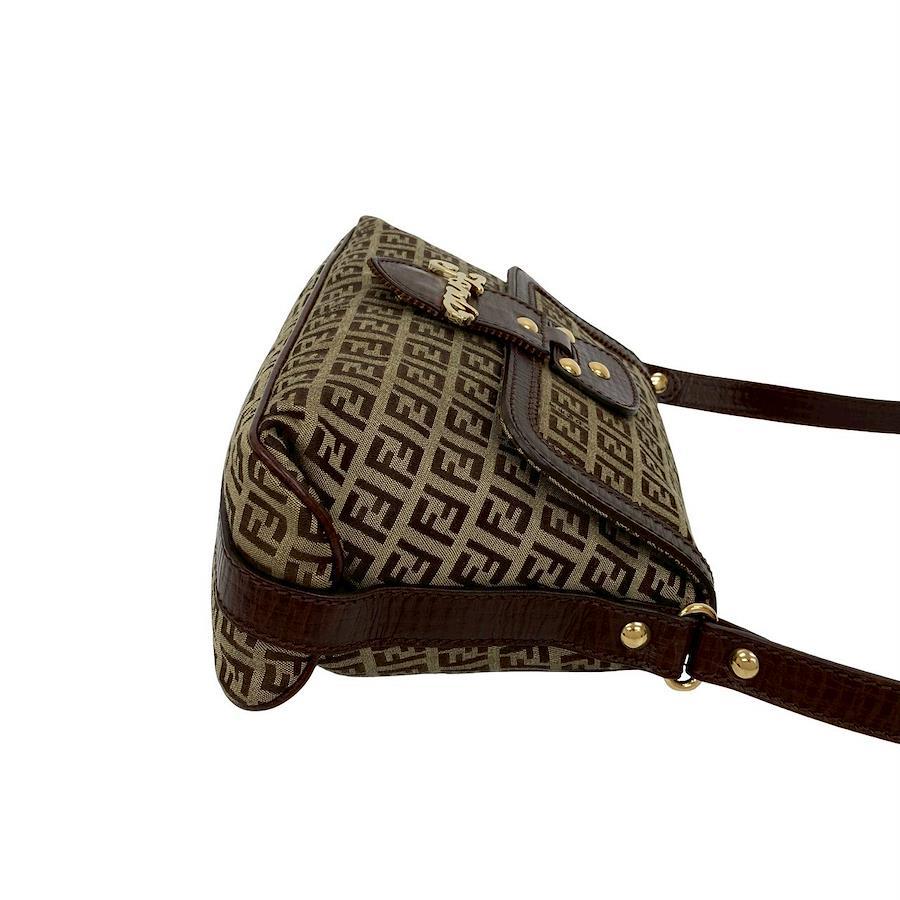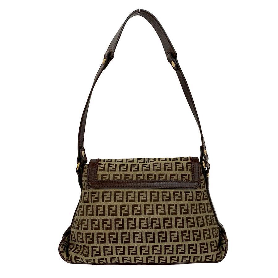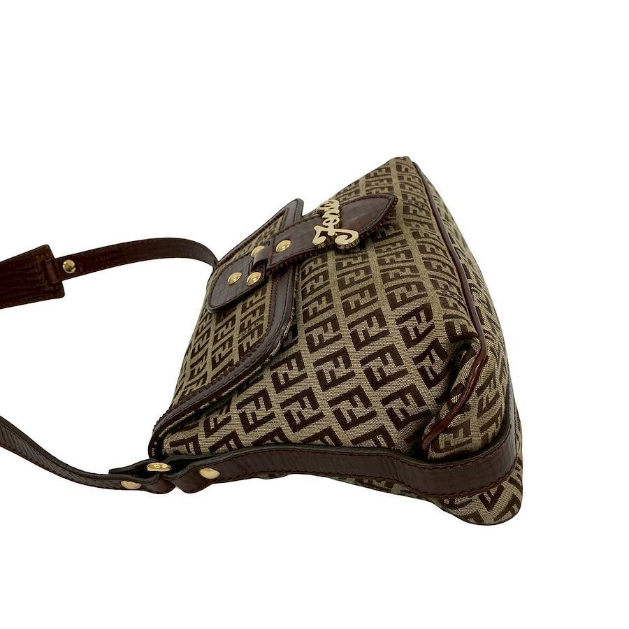 FENDI Zucchino pattern logo hardware leather nylon canvas semi-shoulder bag brown beige 07419