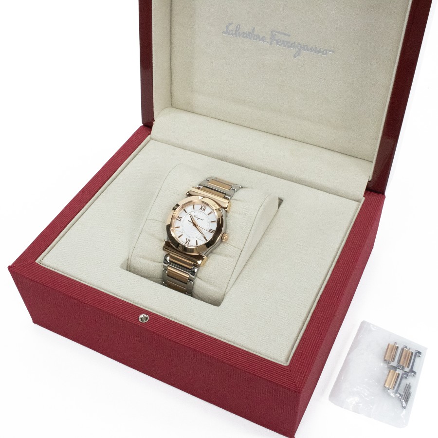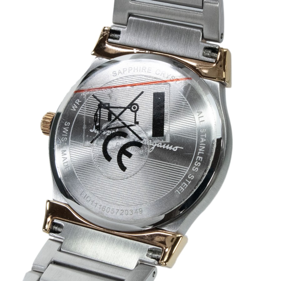 こちらは、都会的なエッセンスでスタイリングを格上げする、フェラガモのベガ・腕時計でございます。