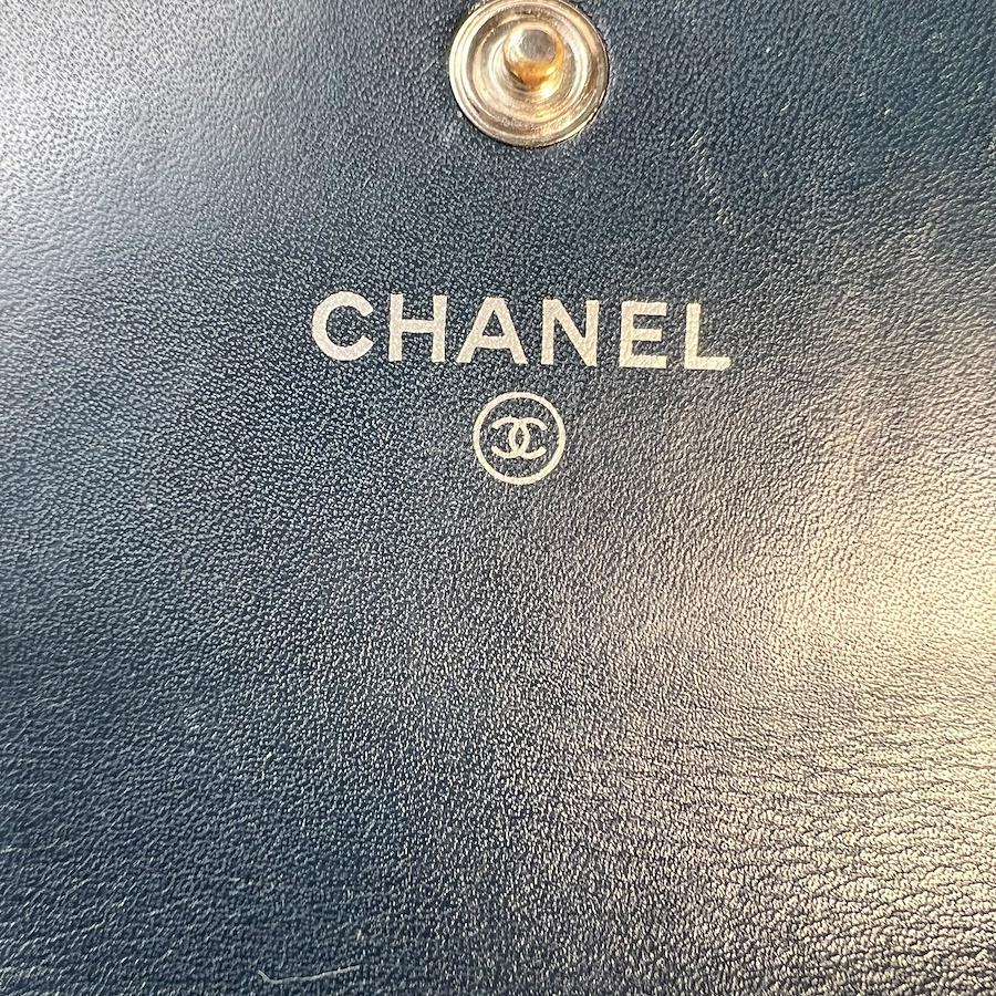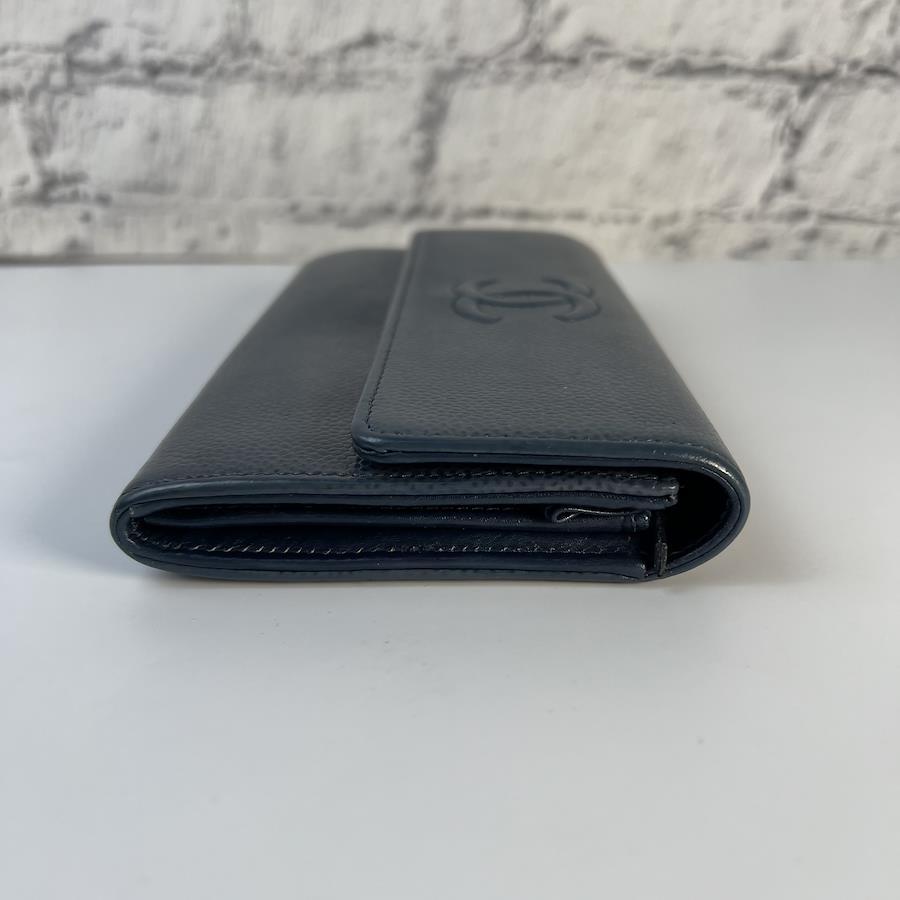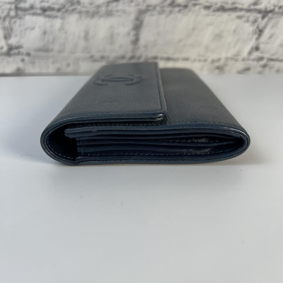 良品 CHANEL シャネル ココマーク キャビアスキン 長財布 ブラック A-7761