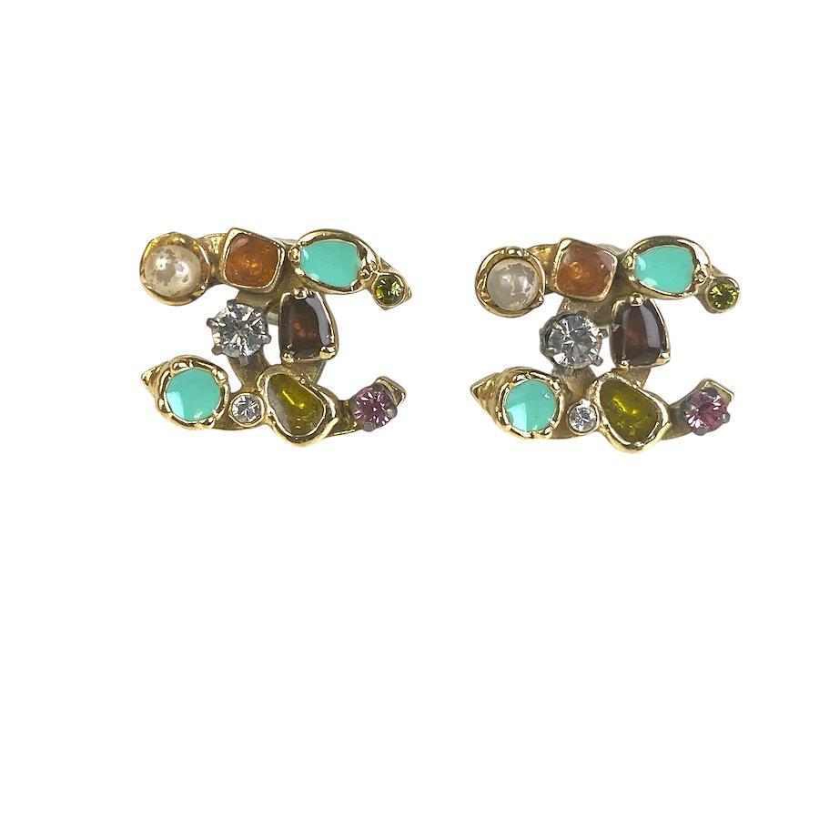 美品 CHANEL シャネル ココマーク 05P カラーストーン ピアス/イヤリング マルチカラー A-7439