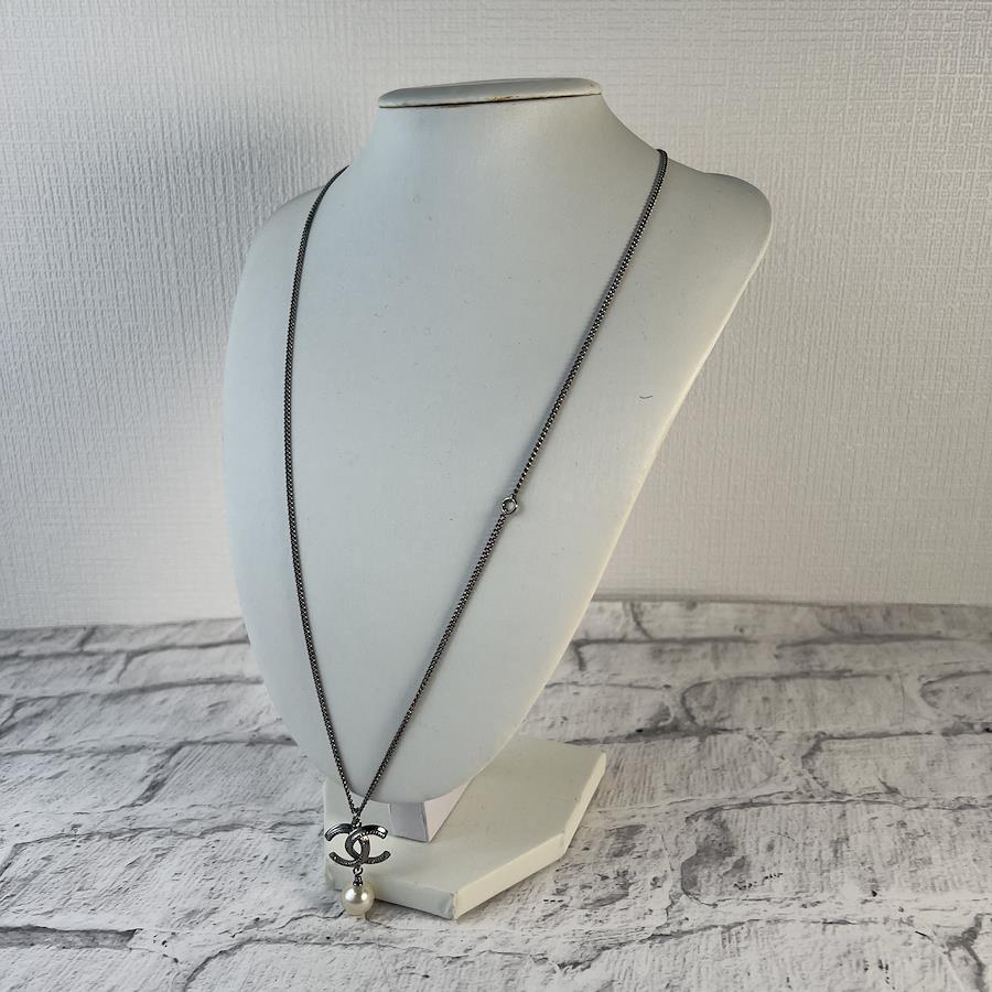 【アイテム】美品 CHANEL シャネル ココマーク フェイクパールネックレス シルバー A-8459