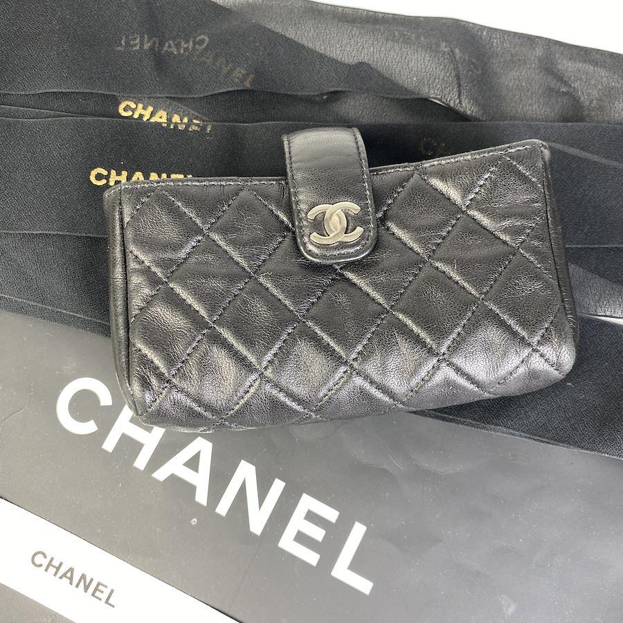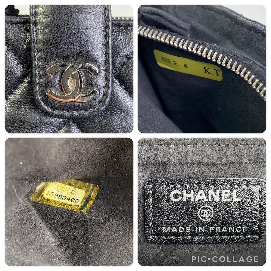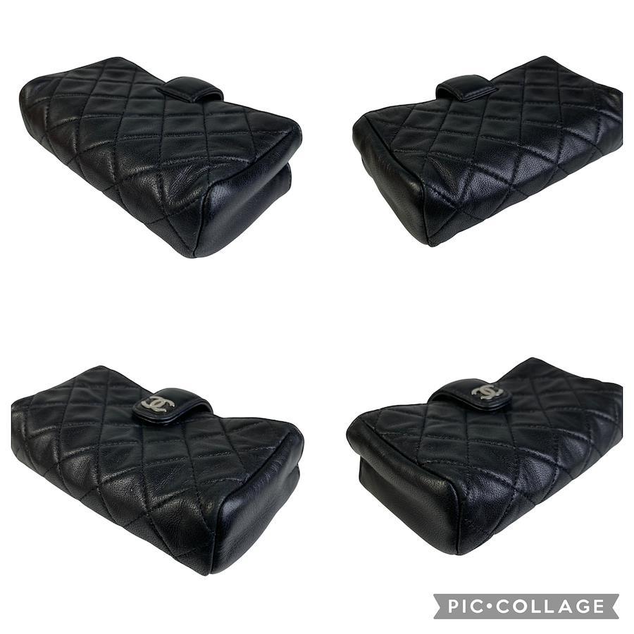 美品 CHANEL シャネル ココマーク ラムスキン ポーチ ブラック A-7410